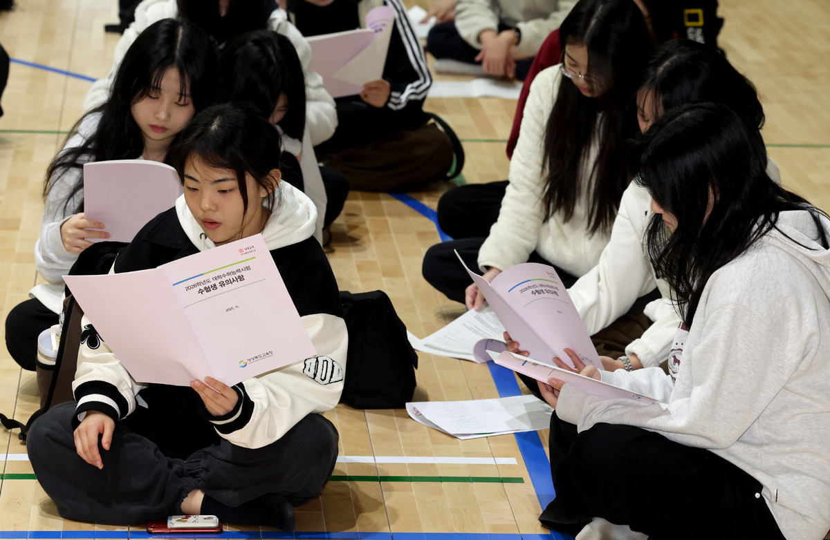 2026학년도 대입 수학능력시험 예비 소집이 시행된 12일 오후 포항 영일고등학교에서 학생들이 수험생 유의 사항을 꼼꼼히 살펴보고 있다. /이용선기자 photokid@kbmaeil.com
