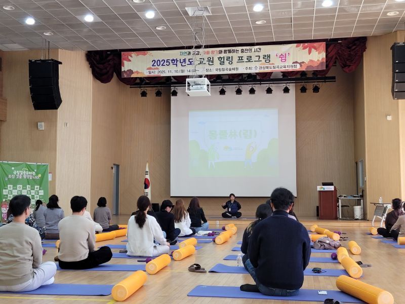 경상북도칠곡교육지원청은 최근, 국립칠곡숲체원에서 교원 39명을 대상으로 2025 교원 힐링 프로그램 ‘쉼’ 연수를 실시했다.