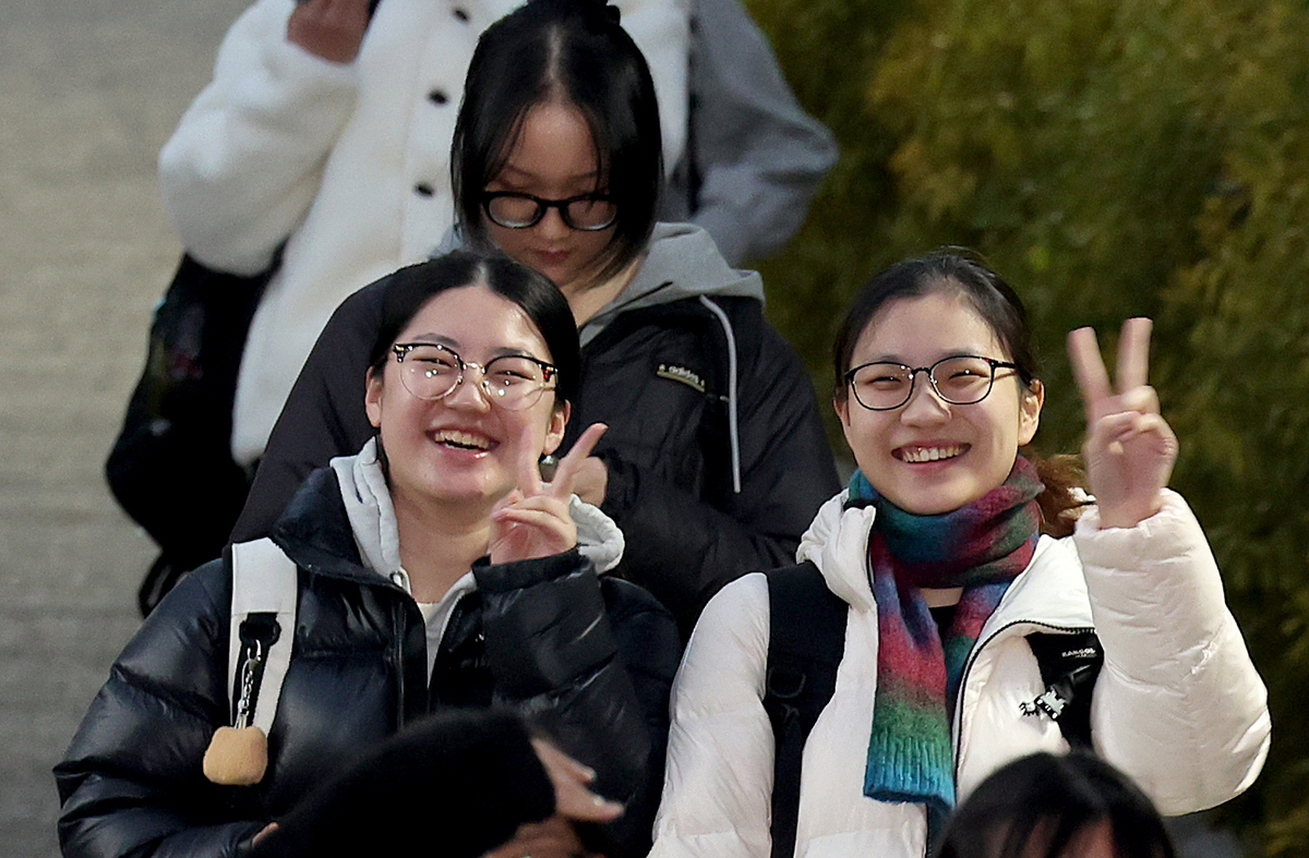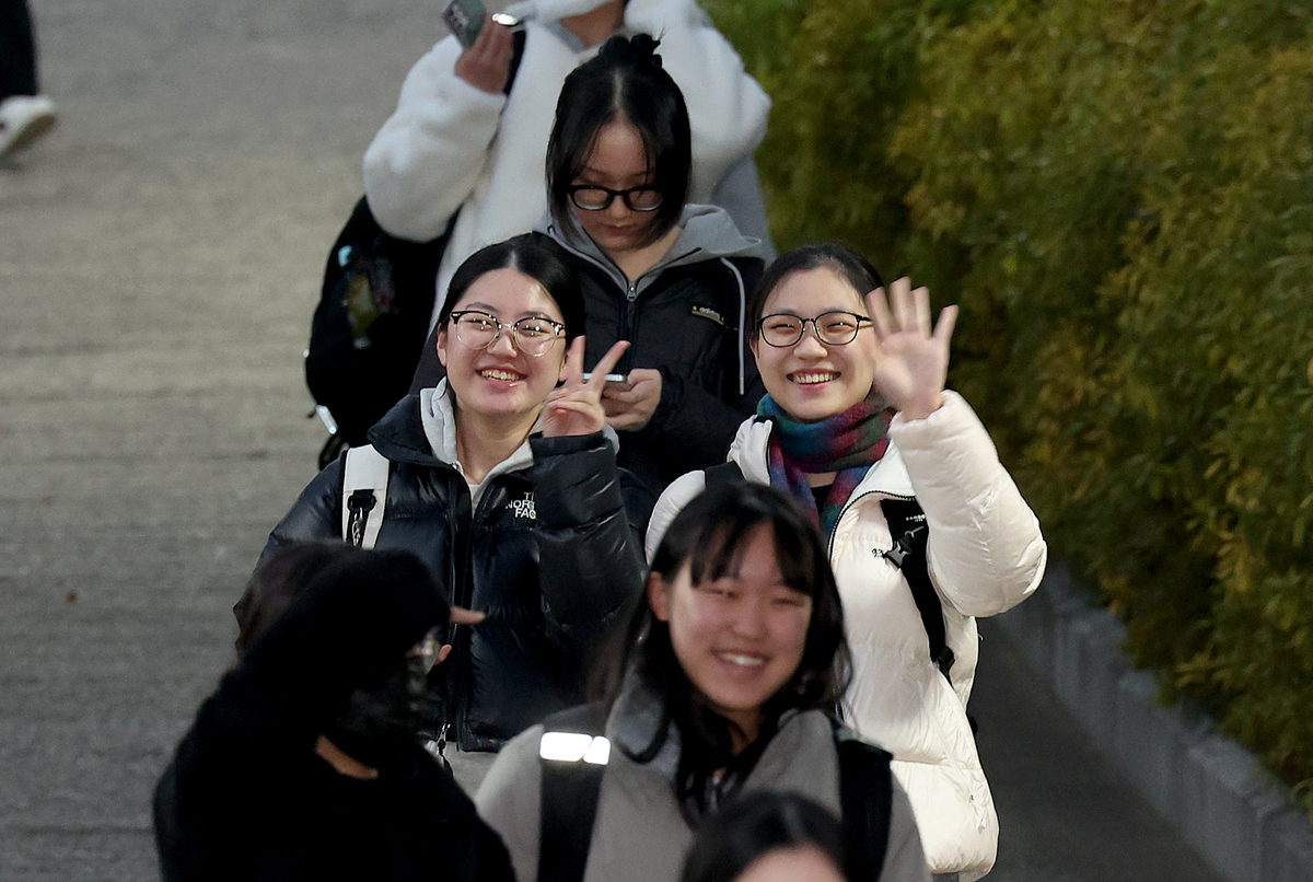 2026학년도 수학능력시험이 시행된 13일 오후 포항 유성여고에서 시험을 마친 수험생들이 환한 표정으로 시험장을 빠져나오고 있다. /이용선기자 photokid@kbmaeil.com