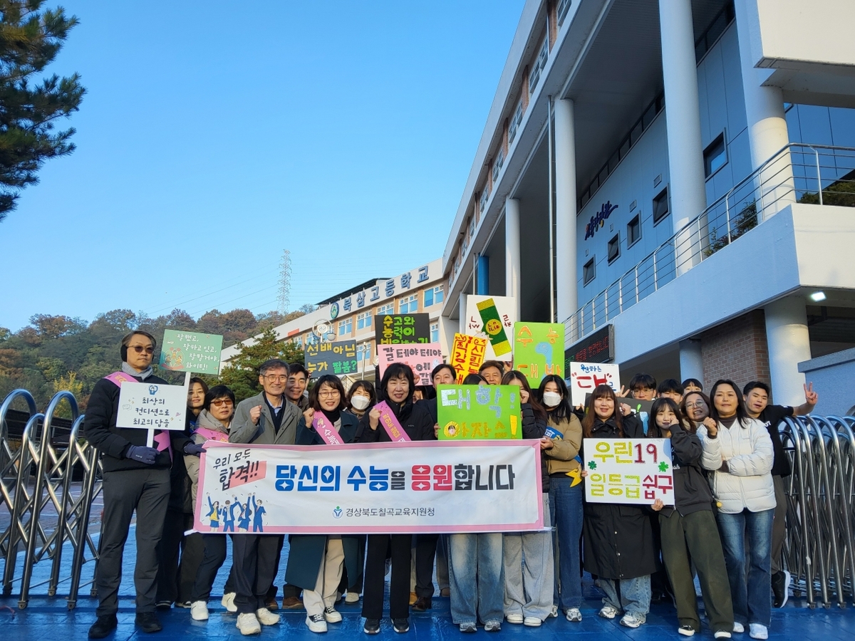 칠곡교육지원청은 13일 관내 2026학년도 대학수학능력시험(수능) 시험장을 방문해 수험생들을 응원하는 행사를 진행했다. 북삼고, 순심고, 순심여고 3개 시험장에서 총 956명의 수험생이 응시했다.
