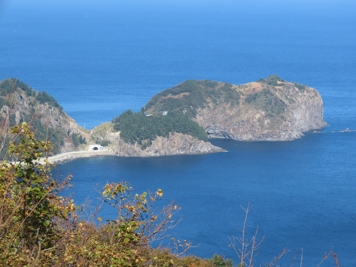 석포에 들렀으니 내친김에 관음도를 빼놓을 수가 있다. 저동에서 북면으로 향하는 순환 버스가 섬목 터널들을 빠져나오면 바로 관음도 입구다. 이 지역은 울릉도의 목이다. 섬목이란 이름은 목처럼 기다란 섬의 목(모가지)이란 뜻이다. 섬 지역에는 유난히 목이란 지명이 들어간 곳이 많다.