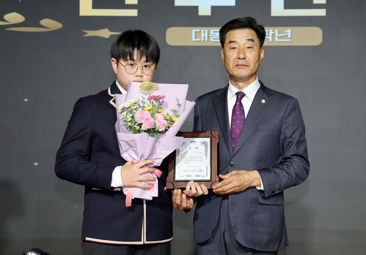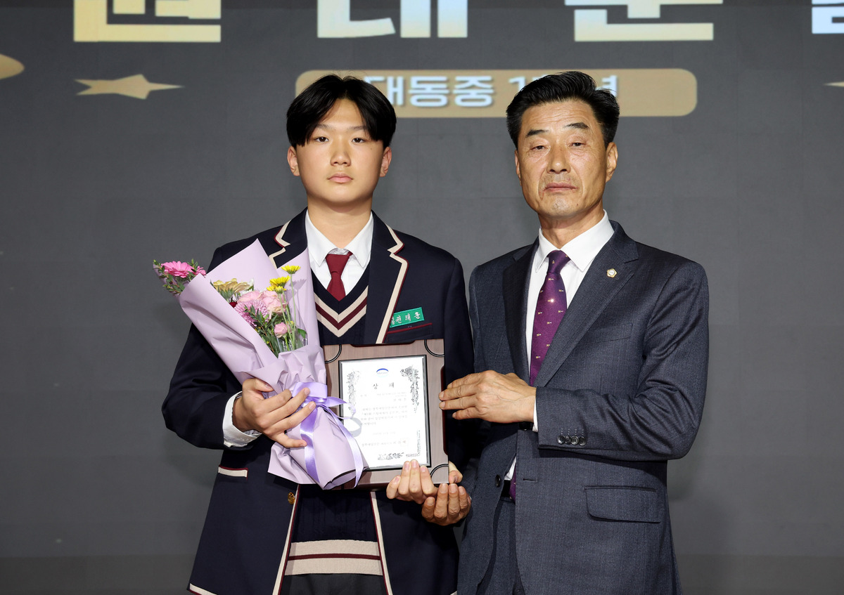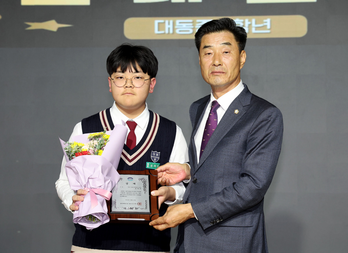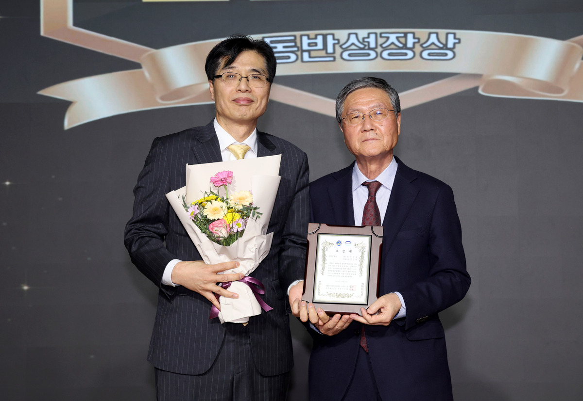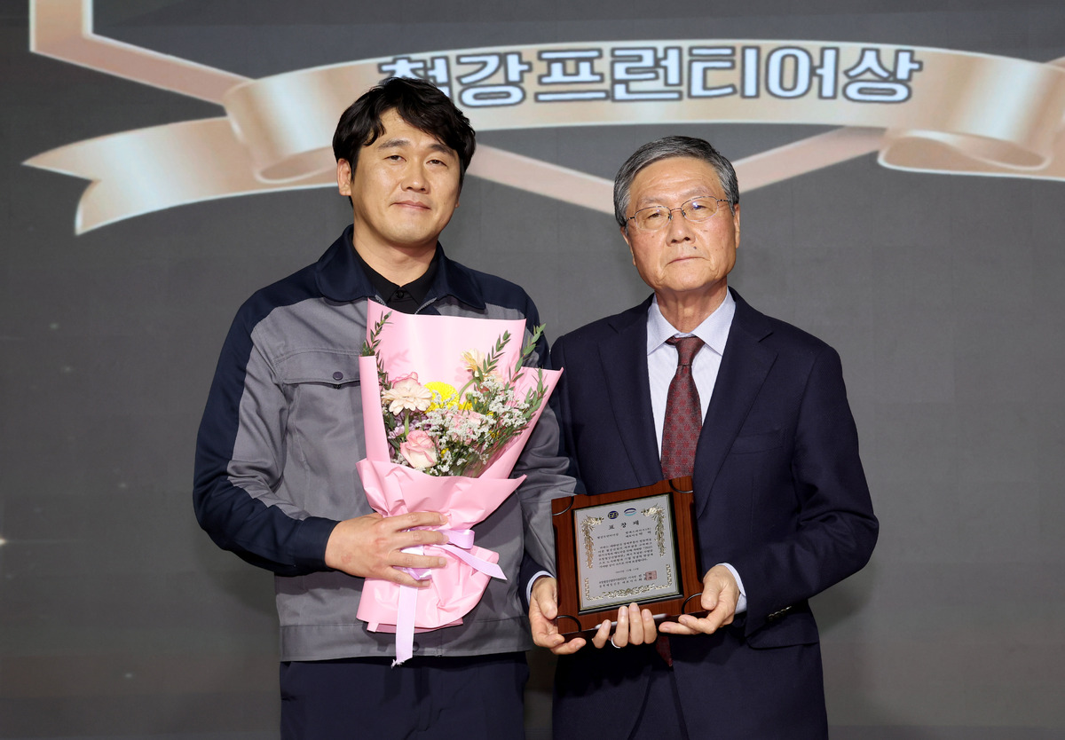 경북매일신문이 주최·주관하고 경북도·포항시·포항철강산업단지관리공단이 후원한 ‘2025 포항철강산업대전’이 지난 14일 오후 포항시청 대회의실에서 열렸다. 이날 행사는 철강산업대상, 스틸에세이, 포토스틸에세이 시상식과 ‘소통왕 말자 할매 토크 콘서트’가 함께 열렸다. 전익현 포항철강관리공단 이사장(우측)이 김윤수 (주)디에스아이 대표이사에게 철강히어로상을 전달하고 있다. /이용선기자 photokid@kbmaeil.com