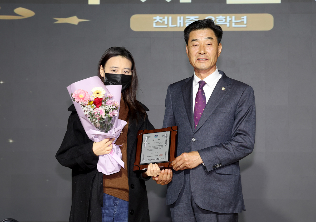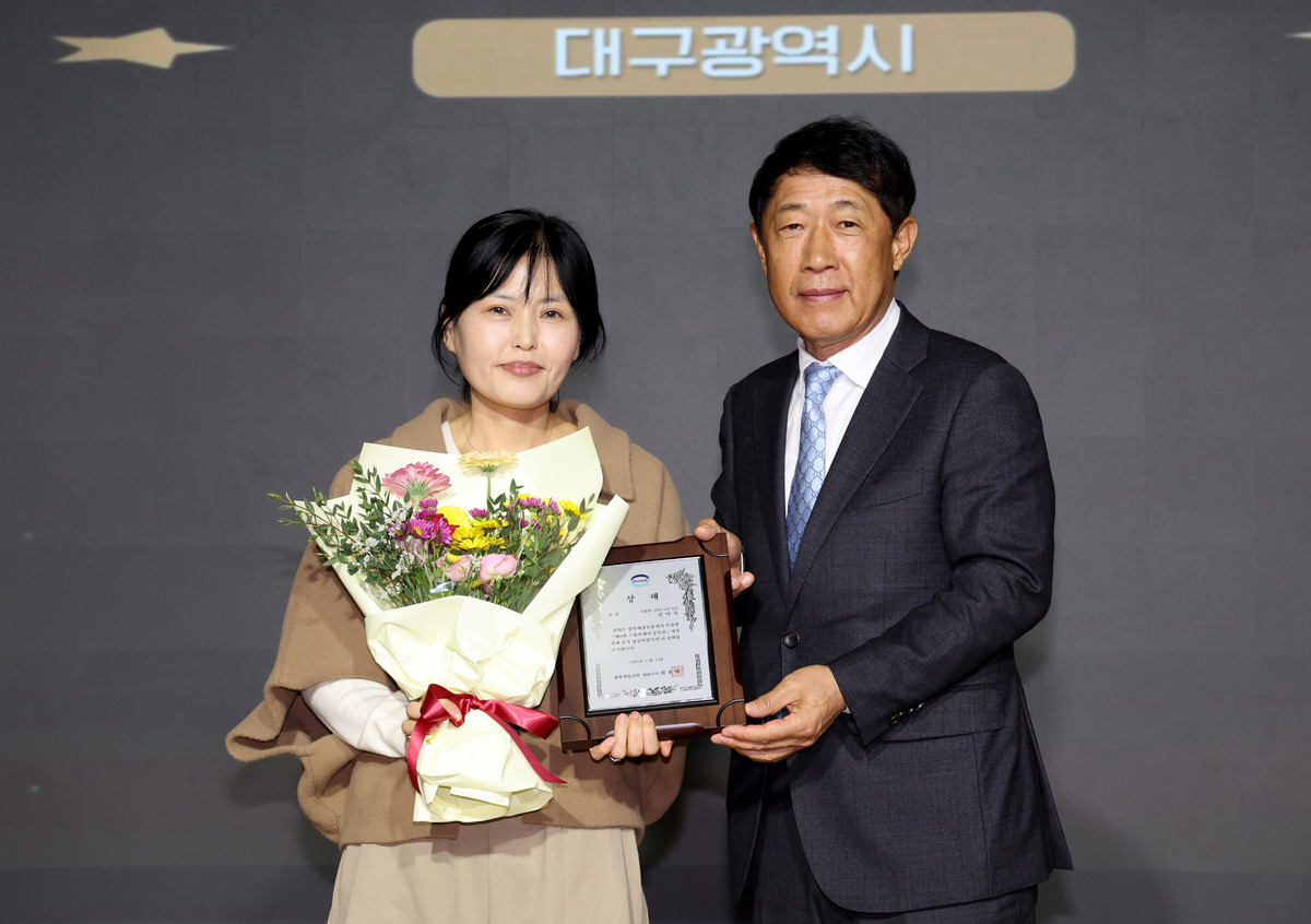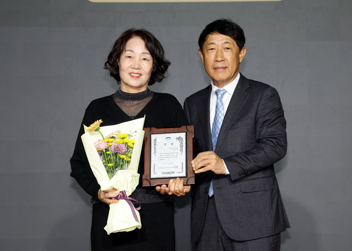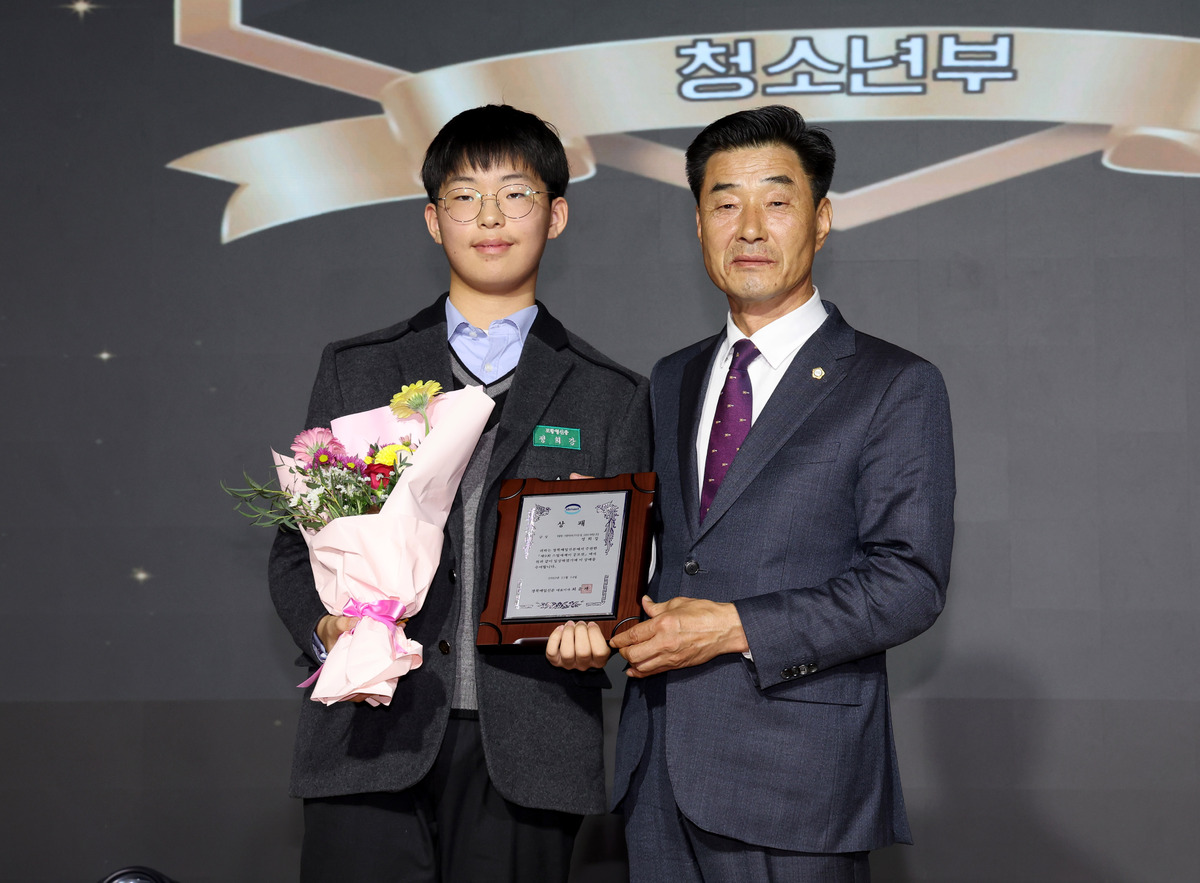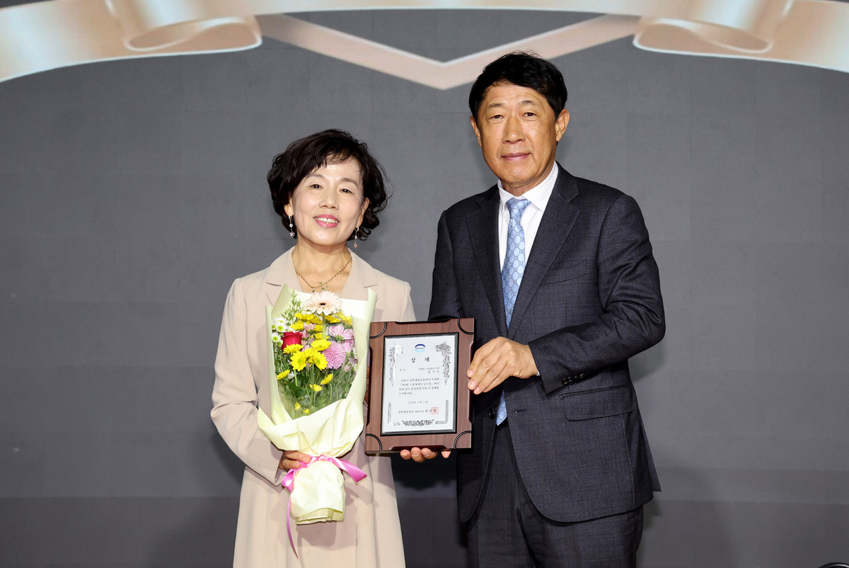 경북매일신문이 주최·주관하고 경북도·포항시·포항철강산업단지관리공단이 후원한 ‘2025 포항철강산업대전’이 지난 14일 오후 포항시청 대회의실에서 열렸다. 이날 행사는 철강산업대상, 스틸에세이, 포토스틸에세이 시상식과 ‘소통왕 말자 할매 토크 콘서트’가 함께 열렸다. 전익현 포항철강관리공단 이사장(우측)이 김윤수 (주)디에스아이 대표이사에게 철강히어로상을 전달하고 있다. /이용선기자 photokid@kbmaeil.com