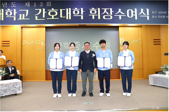 동양대 간호대학은 제13회 휘장수여식에서 2021년 졸업생 김종휘·김휘윤 동문이 주도한 장학금을 재학생에게 전달했다.