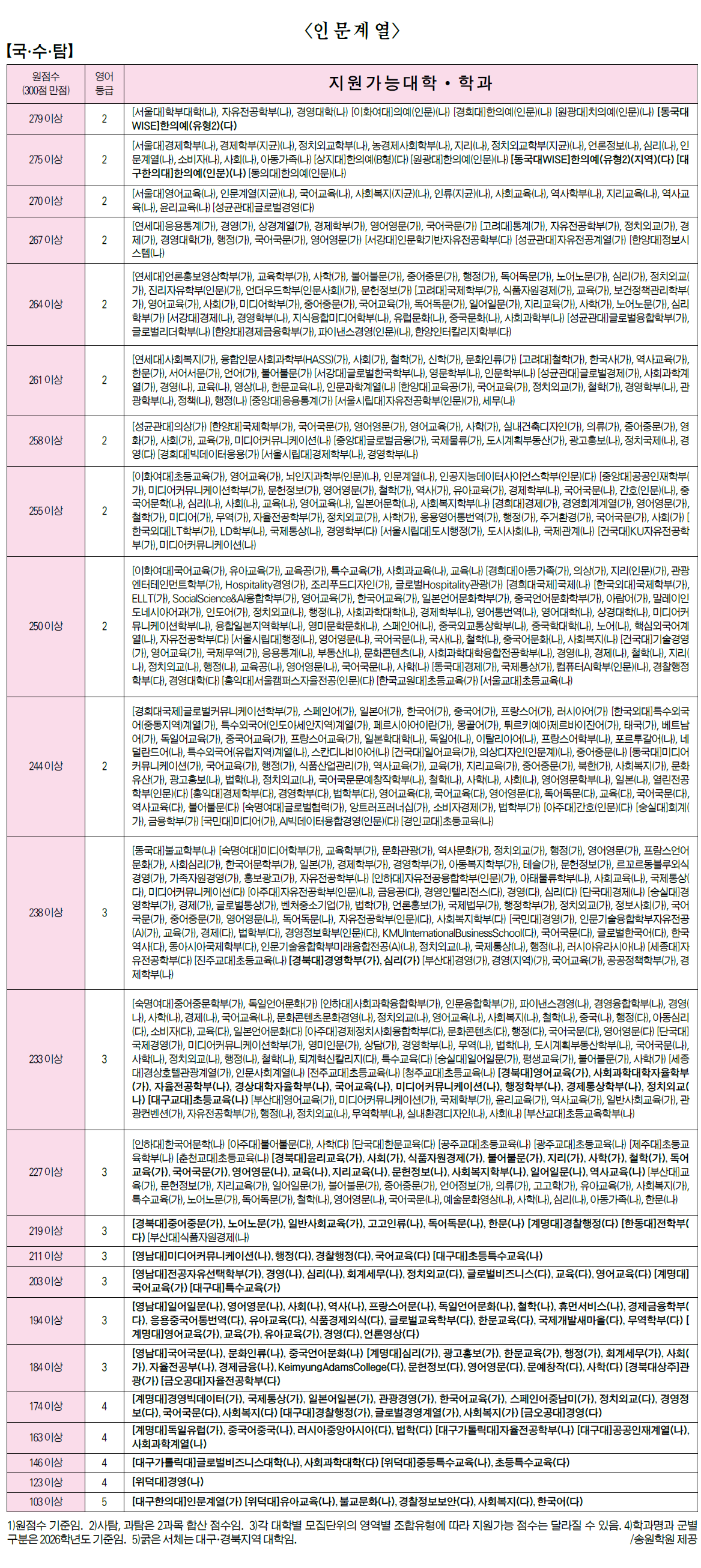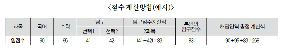 3. 영역별(국어, 수학, 사탐, 과탐) 만점은 원점수로 각 100점 기준임.