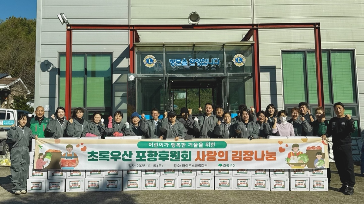 초로우산은 지난 15일 포항 라이온 스클럽회관에서 ‘포항후원회 사랑의 김장나눔 행사‘를 가졌다. 올해로 3회째를 맞은 김장나눔 행사는 겨울철 식사 준비가 어려운 취약계층 아동을 지원하기 위해 마련됐다.