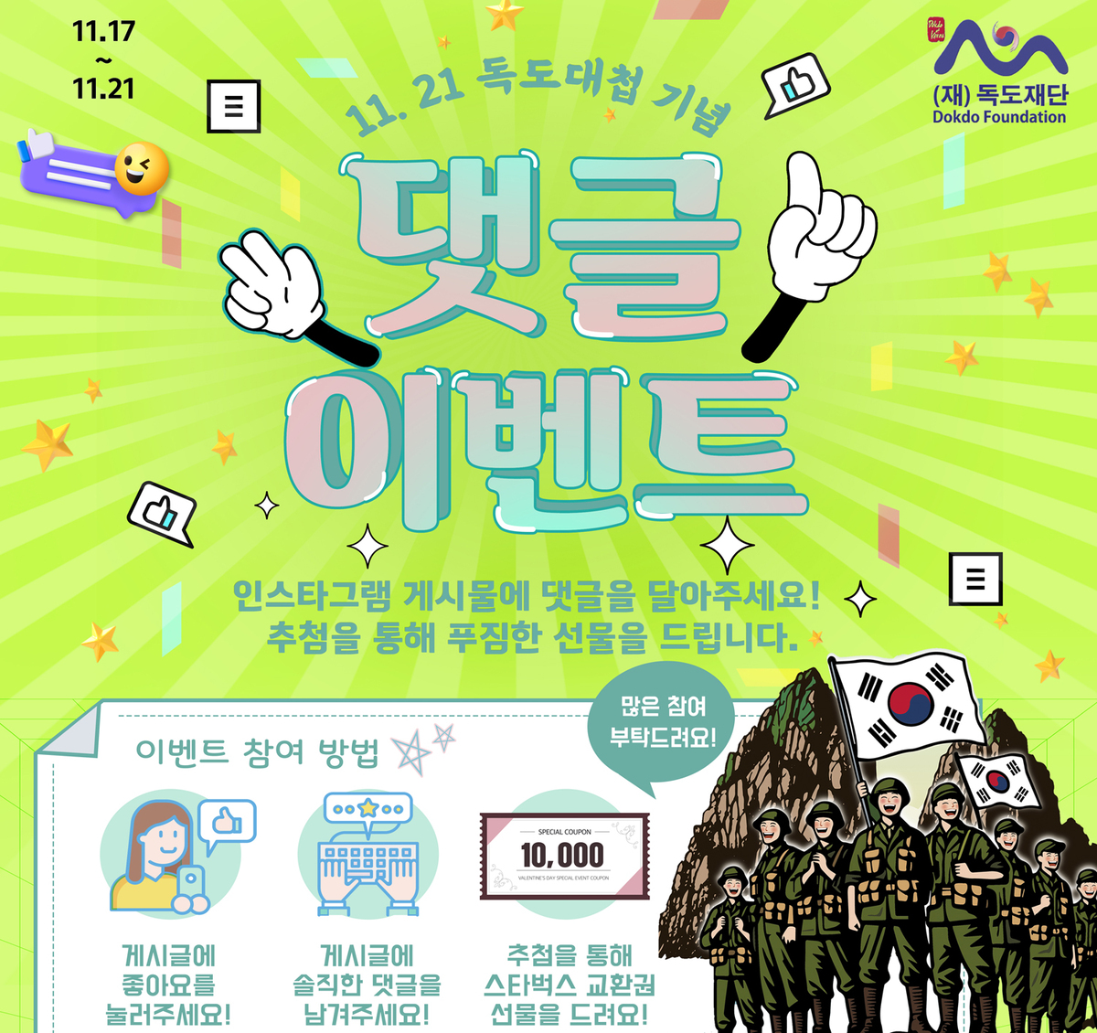 이번 기념 주간에는 독도의용수비대 활약을 기리는 추모식과 기념공연, 독도 수호 정신을 체험하는 참여 프로그램 등이 마련된다. 독도재단은 재단이 운영하는 K-독도 인스타그램에서 독도 사랑을 표현하는 댓글 이벤트도 진행해 국민 참여를 확대한다.