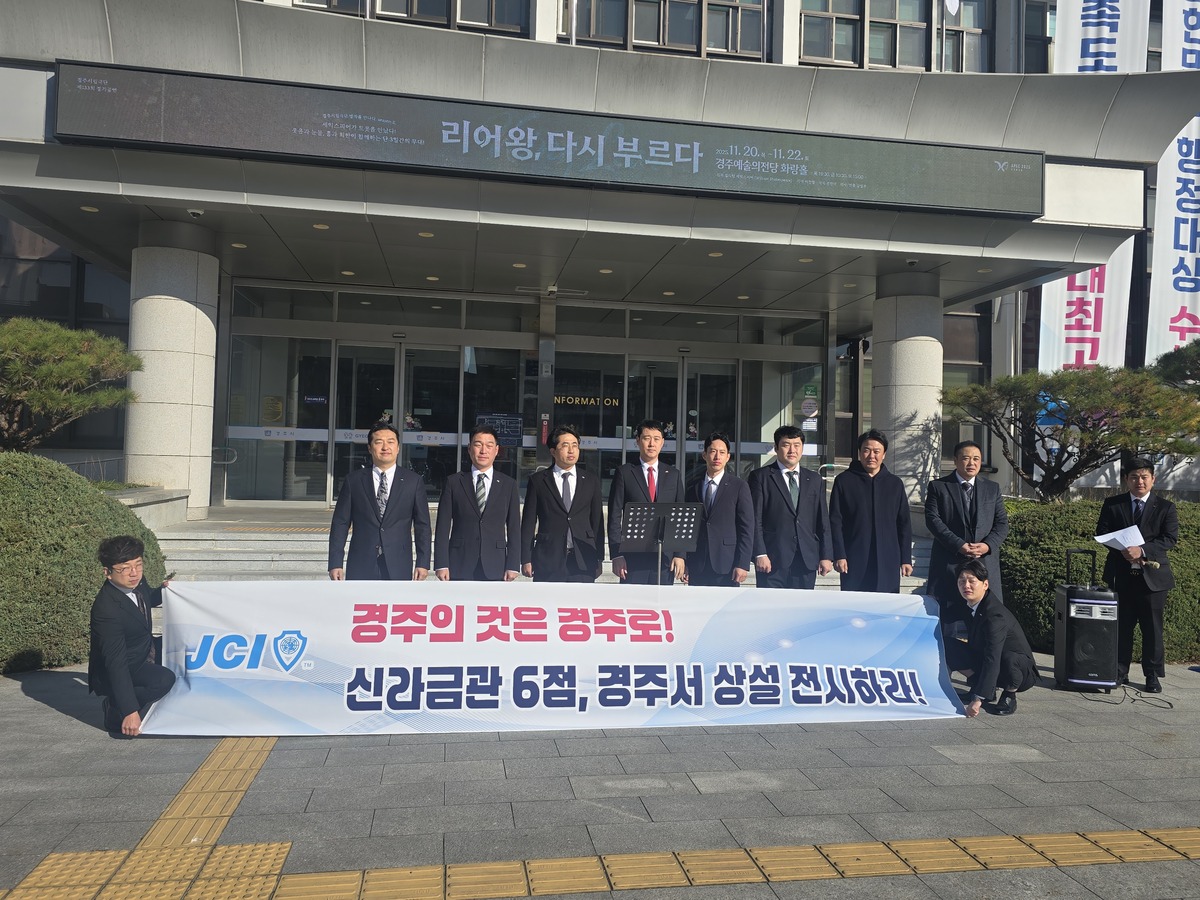 경주청년회의소는 18일 성명을 통해 “신라 금관은 경주의 정체성과 시민의 자존심”이라며 “상설 전시가 이뤄질 때까지 경주시·시의회·시민단체와 연대해 투쟁할 것”이라고 밝혔다.