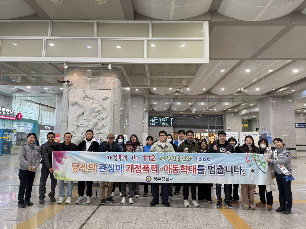 경주경찰서가 19일 경주역에서 경북 남부아동보호전문기관과 합동으로 아동학대 및 관계성 범죄 예방 캠페인을 실시했다.