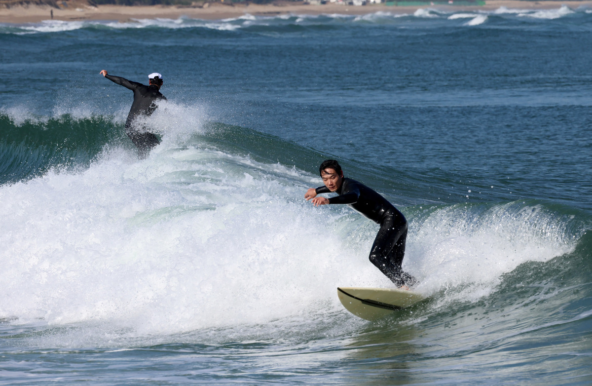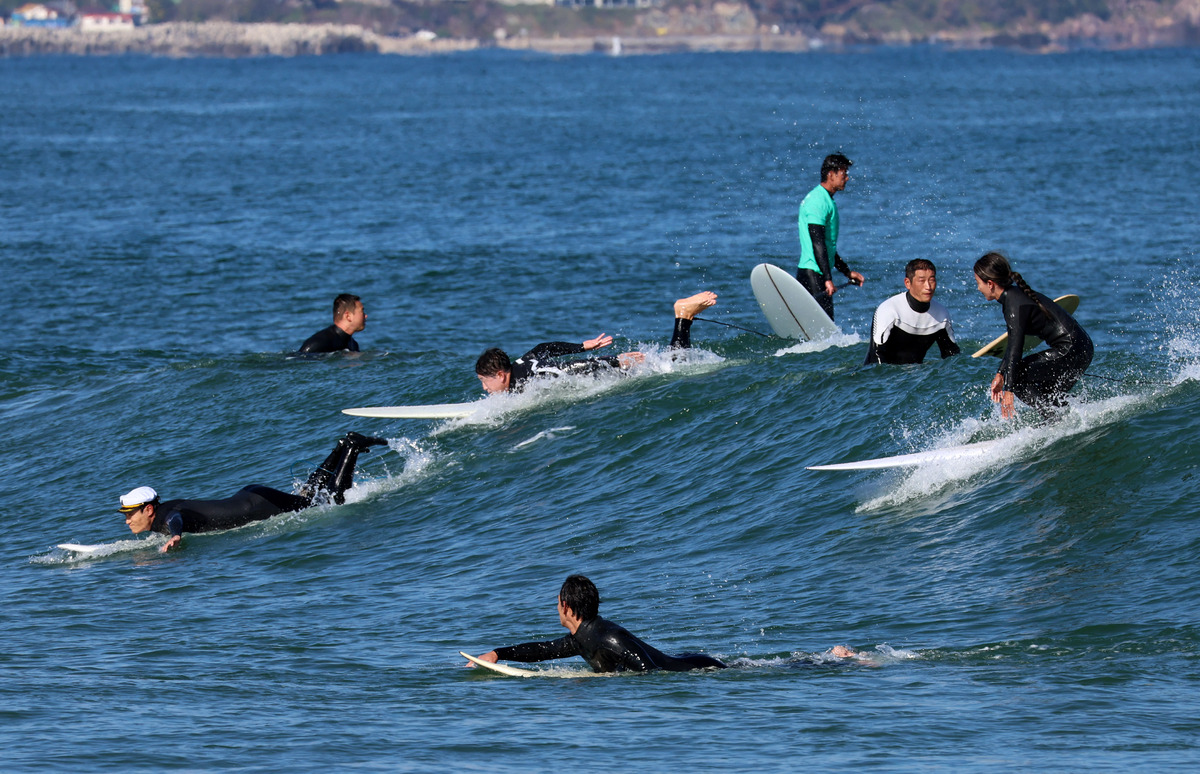 절기 소설을 사흘 앞둔 19일 오전 북구 흥해읍 용한리 간이해수욕장에서 서퍼들이 파도타기를 즐기고 있다. 기상청은 20일부터 평년기온을 회복할 것으로 내다봤다. /이용선기자 photokid@kbmaeil.com