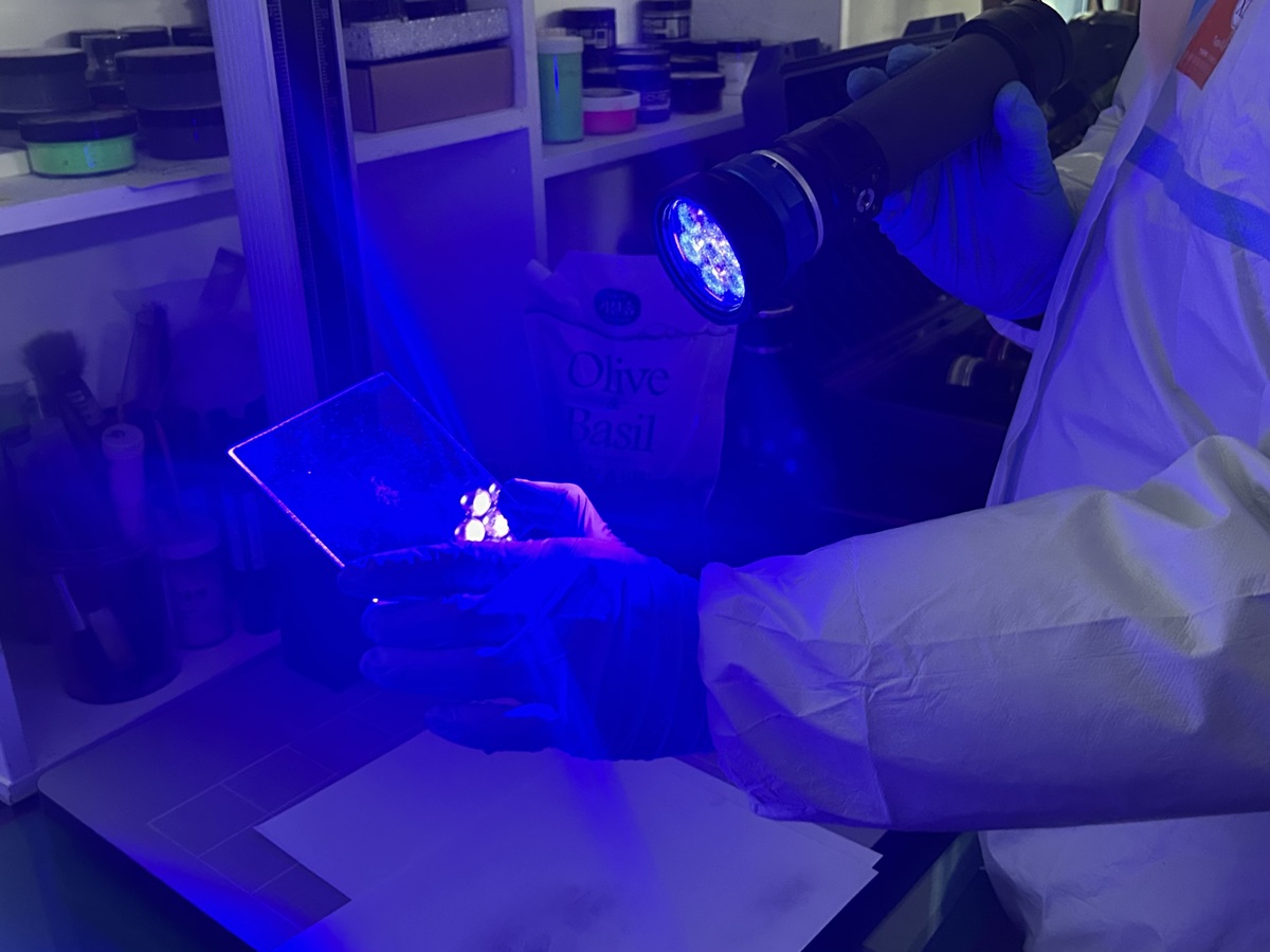이날 이용기 대구경찰청 과학수사계 경위는 손자국이 남은 종이에 검은색 파우드를 묻혀 지문을 현출하고, 광원을 이용해 증거물을 찾는 과정을 상세히 보여줬다. 채취된 지문은 카메라로 촬영 후 지문 감식 시스템에 입력돼 실제 수사 과정과 동일한 방식으로 처리됐다. 기자들은 실험 과정 하나하나를 유심히 관찰하며 메모를 했다.
