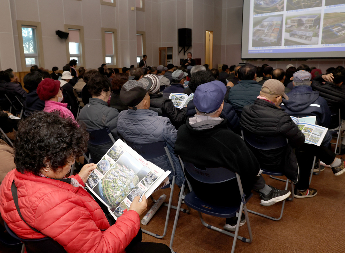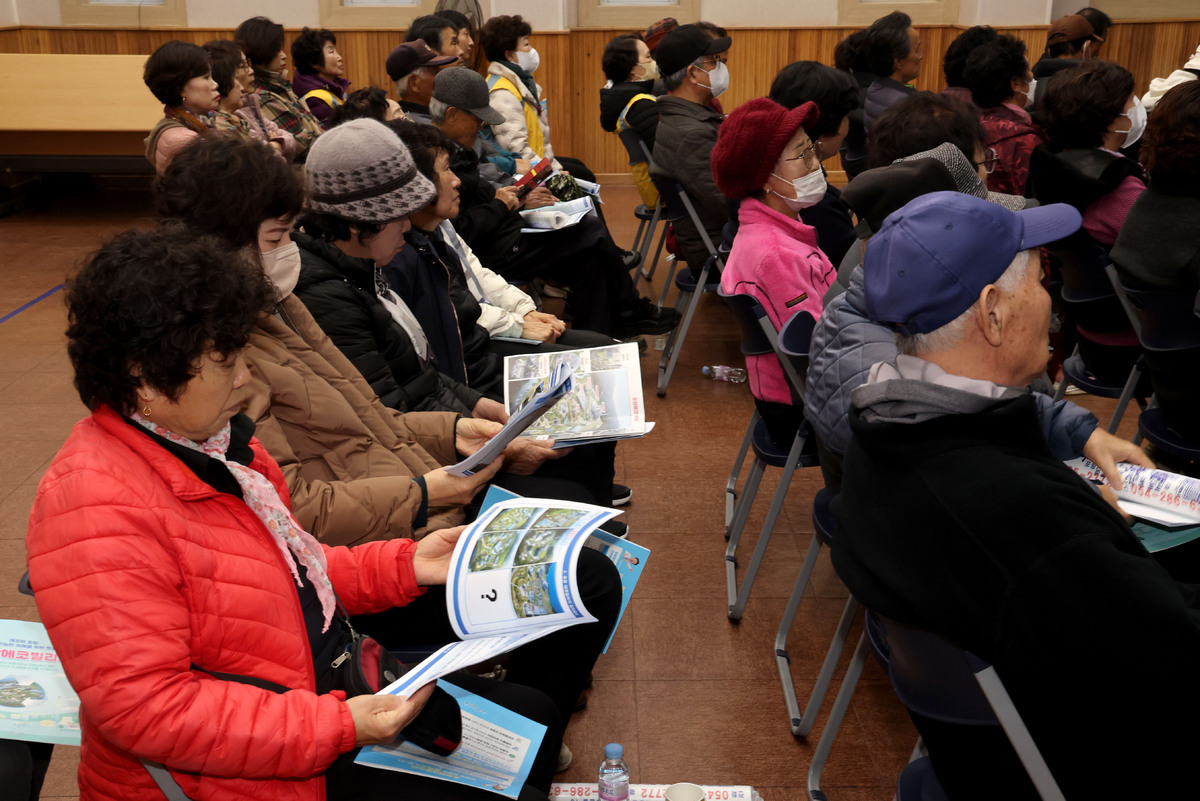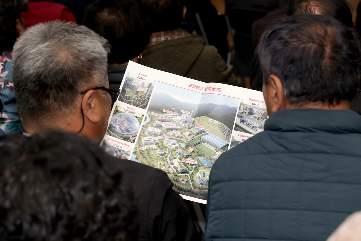 포항 에코빌리지 입지 공모 기간이 12월 26일까지 연장된 가운데 ‘에코빌리지 유치 수용성 확보를 위한 대송면 주민공청회’가 19일 오후 대송면 다목적 복지회관에서 열렸다. 참석 주민들이 자료를 살펴보고 있다. ‘포항에코빌리지’는 2034년 사용이 종료될 호동2매립장과 생활폐기물 에너지화시설(SRF)을 대체하는 차세대 종합 생활폐기물처리시설이다. /이용선기자 photokid@kbmaeil.com