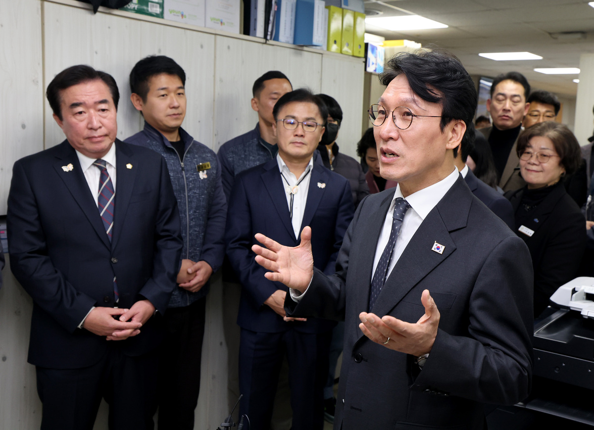 김민석 국무총리가 20일 오전 APEC 정상회의 준비로 고생한 경주시 공무원을 격려하려고 경주시청을 방문했다. 도로과 사무실에서 고생한 직원과 협조해준 시민에게 감사 인사를 전하고 있다. /이용선기자 photokdi@kbmaeil.com
