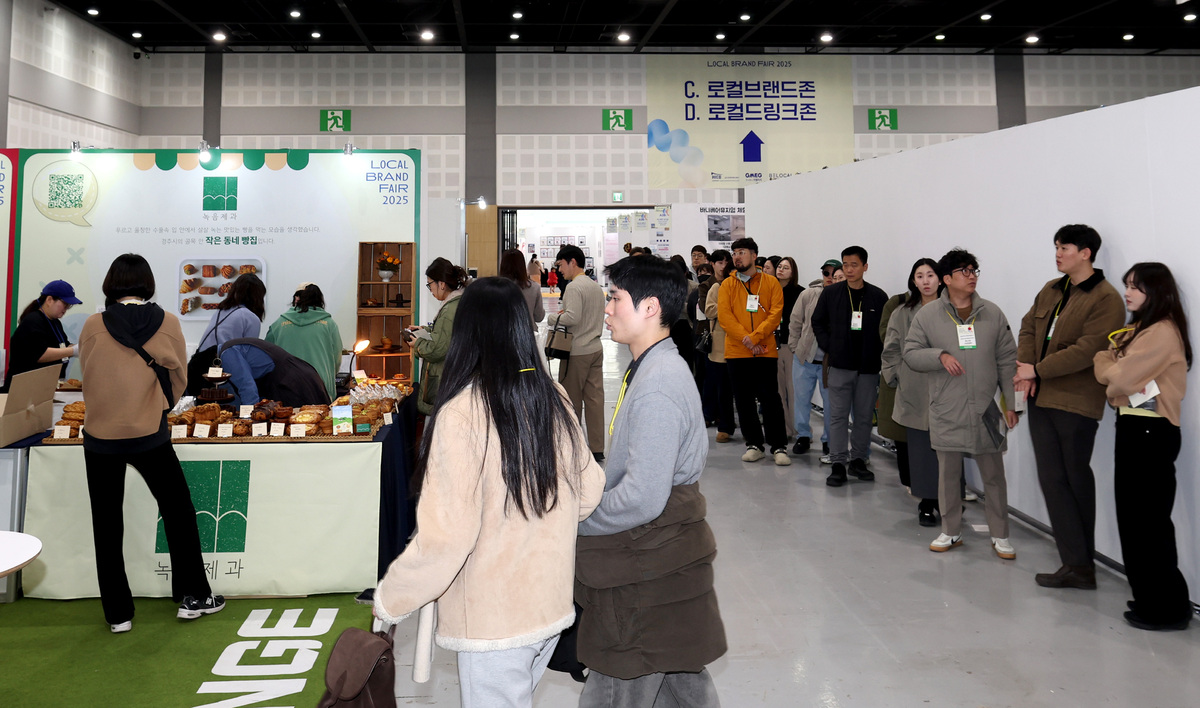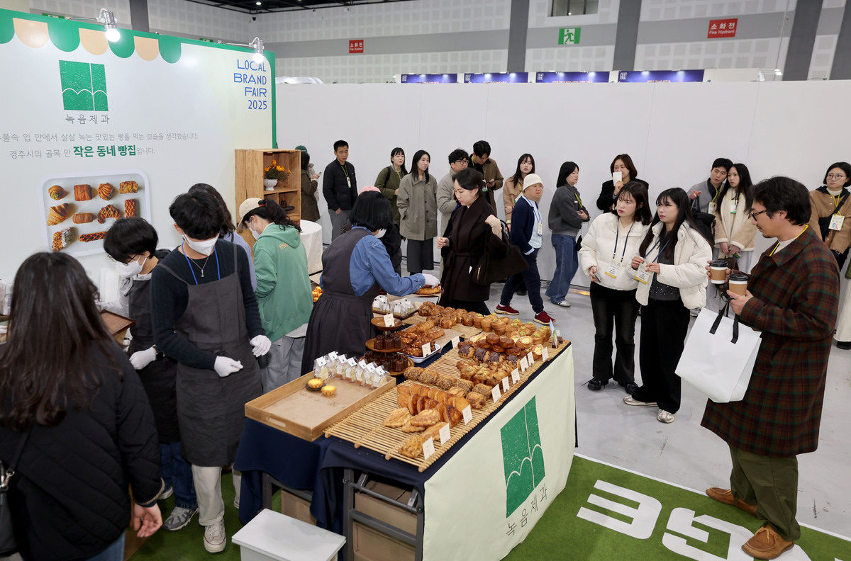 지역의 브랜드와 제품을 성장시키는 기회의 장으로 활용할 수 있는 ‘로컬 브랜드 페어 2025’가 오는 22일까지 경주 화백컨벤션센터에서 열린다. 첫날인 20일 경주에서 큰 인기를 끌고 있는 한 제과점 부스에 빵을 사려는 관람객들이 줄지어 차례를 기다리고 있다. /이용선기자 photokid@kbmaeil.com