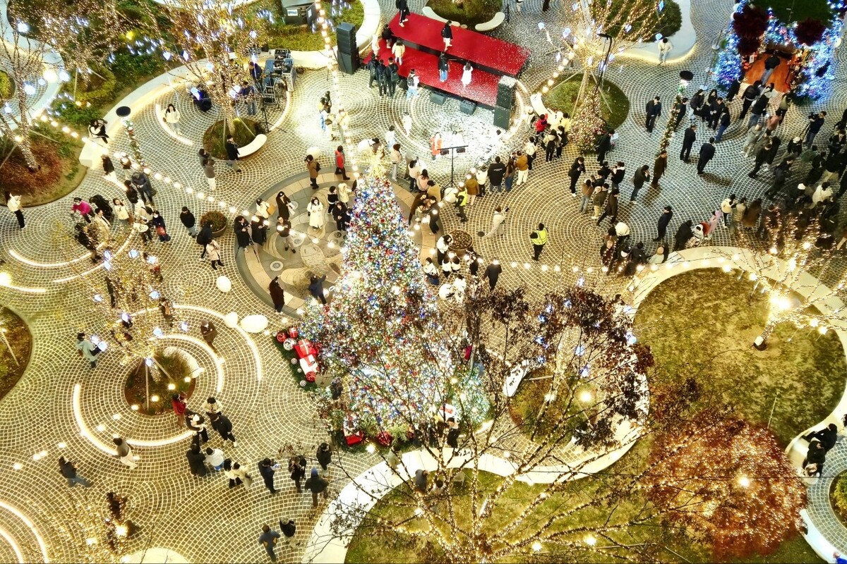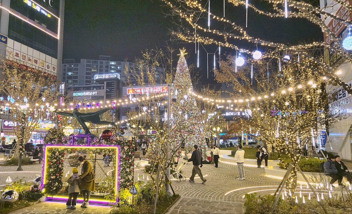 올해 경관조명은 광장과 보행자도로까지 확대 설치돼 한층 풍성한 볼거리를 제공한다. 광장 중심에는 10m 높이 크리스마스 트리와 벨벳 장식 선물상자 포토존이 설치돼 방문객들의 시선을 사로잡았다. 거리 곳곳을 밝히는 스트링 조명은 따뜻하고 화려한 연말 풍경을 완성했다.