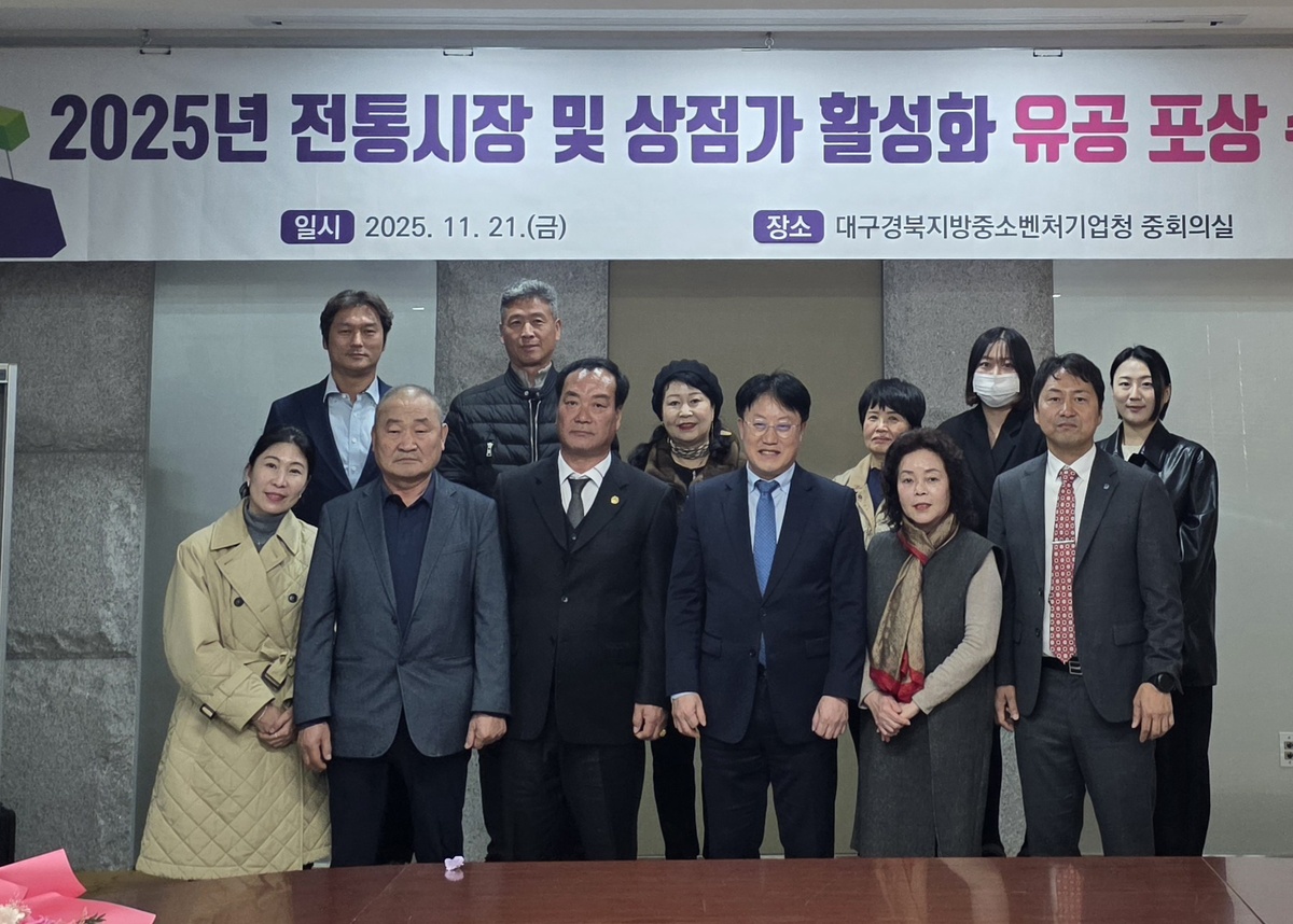 중소벤처기업부 대구·경북지방중소벤처기업청(대경중기청)은 지난 21일 청사 중회의실에서 ‘전통시장 및 상점가 활성화 유공자 정부포상 수여식’을 열고 지역 전통시장 발전에 기여한 상인과 관계자들에게 표창을 수여했다.