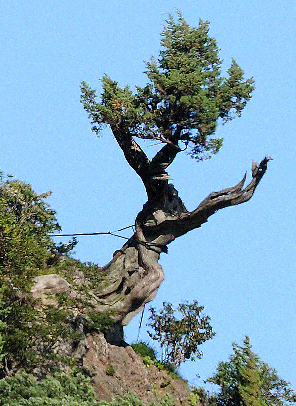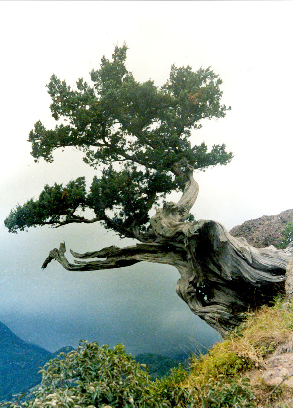 이 향나무는 여러 차례 자연재해로 큰 상처를 겪기도했다. 1985년 태풍 브랜다로 주요 줄기 일부가 부러졌고, 현재는 와이어로 바위에 고정돼 있다.