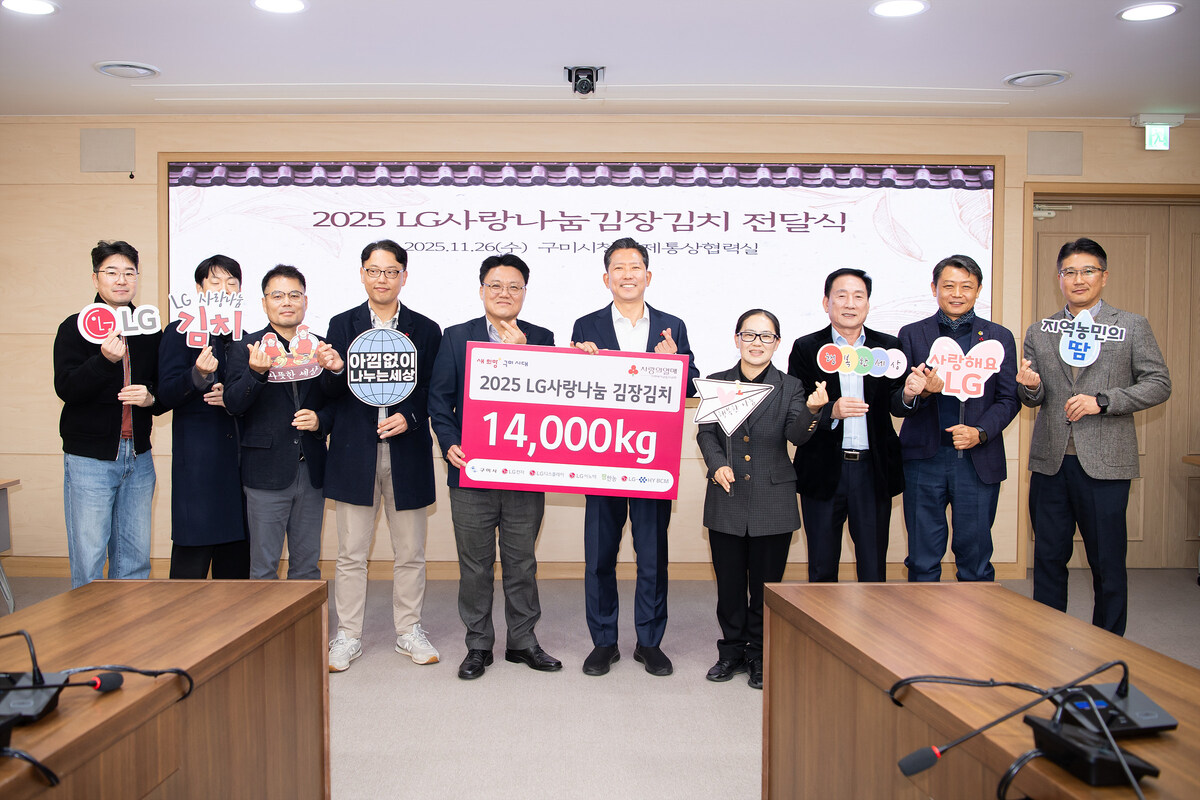 김장호 구미시장은 “올해도 변함없이 나눔에 함께해준 LG전자, LG디스플레이, LG이노텍, 팜한농, LG-HY BCM에 감사드린다”며 “전달받은 김치가 취약계층의 겨울 준비에 큰 힘이 되길 바란다”고 밝혔다.