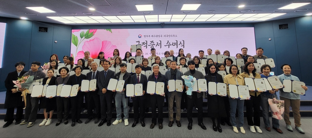 대구출입국·외국인사무소는 최근 경산시 영남대 천마아트센터에서 경북지역 국적취득자 50명을 대상으로 뜻깊은 국적증서 수여식을 개최했다.