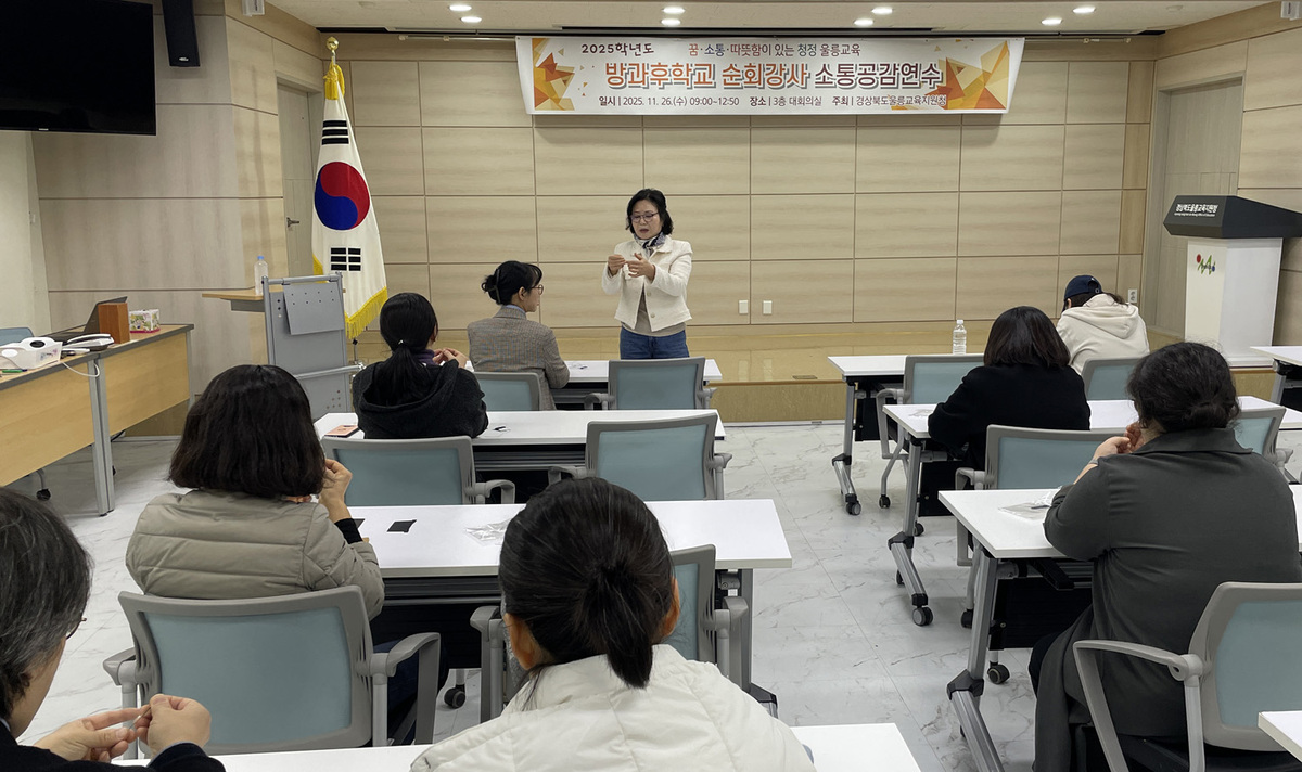 울릉교육지원청(교육장 이동신)은 최근 교육지원청 3층 회의실에서 방과후학교 순회강사 7명을 대상으로 2025학년도 방과후학교 순회강사 소통·공감 연수를 실시했다.