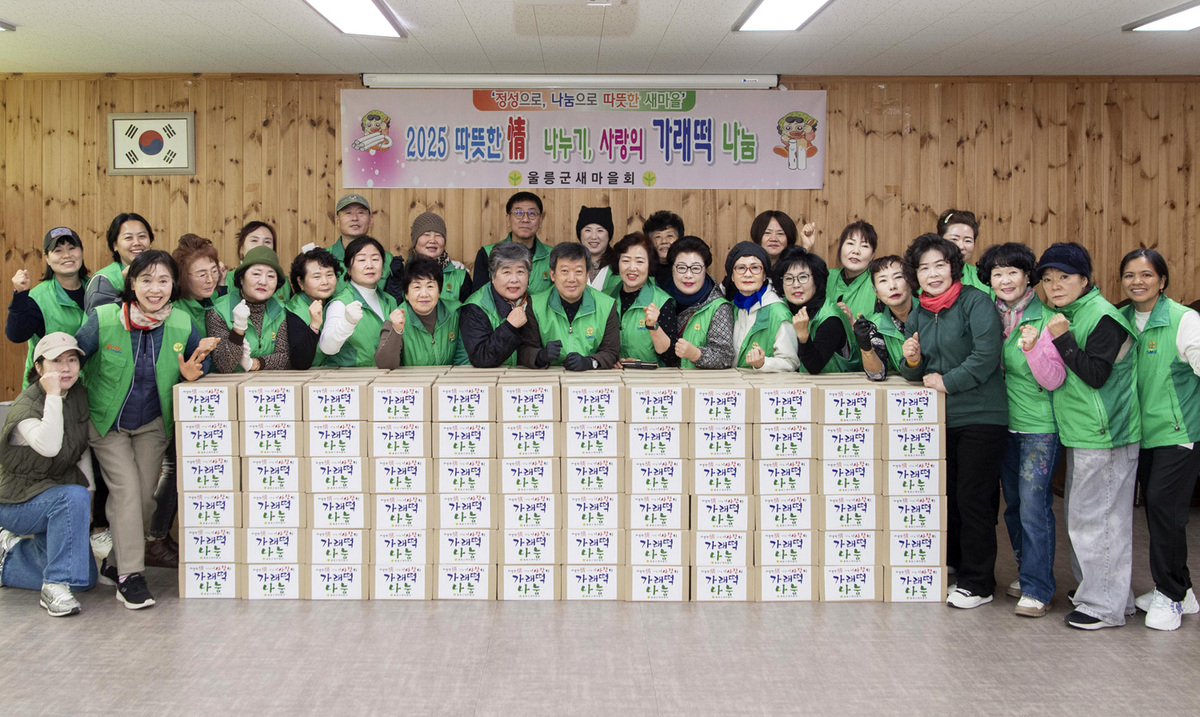 울릉새마을회(회장 이정호)는 26일 이웃사랑과 나눔을 실천하기 위한 행사를 개최하고 관내 홀몸어르신과 취약계층 등 300여 가구에 가래떡과 소고기 등을 전달하고 격려했다.
