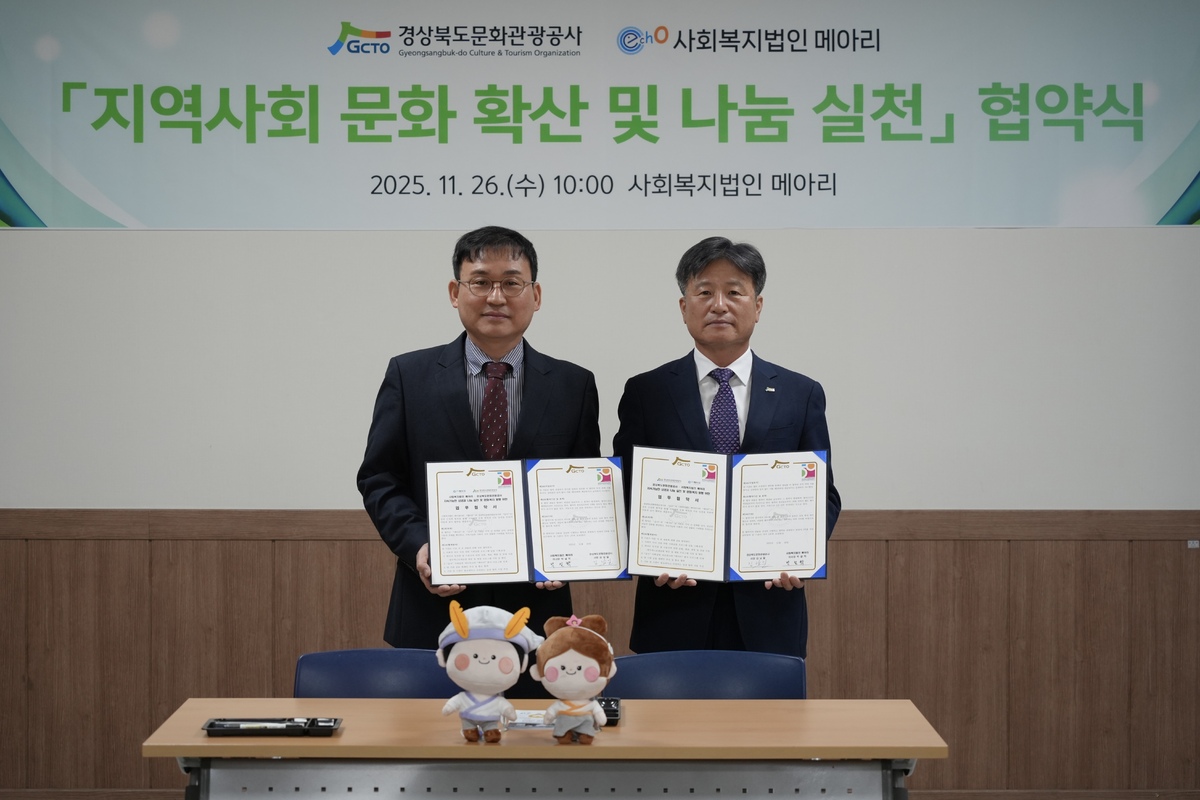 경상북도문화관광공사가 지난 26일 사회복지법인 메아리와 문화복지 증진 및 사회적 가치 실현을 위한 업무협약을 체결했다.