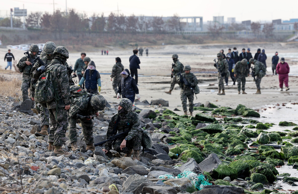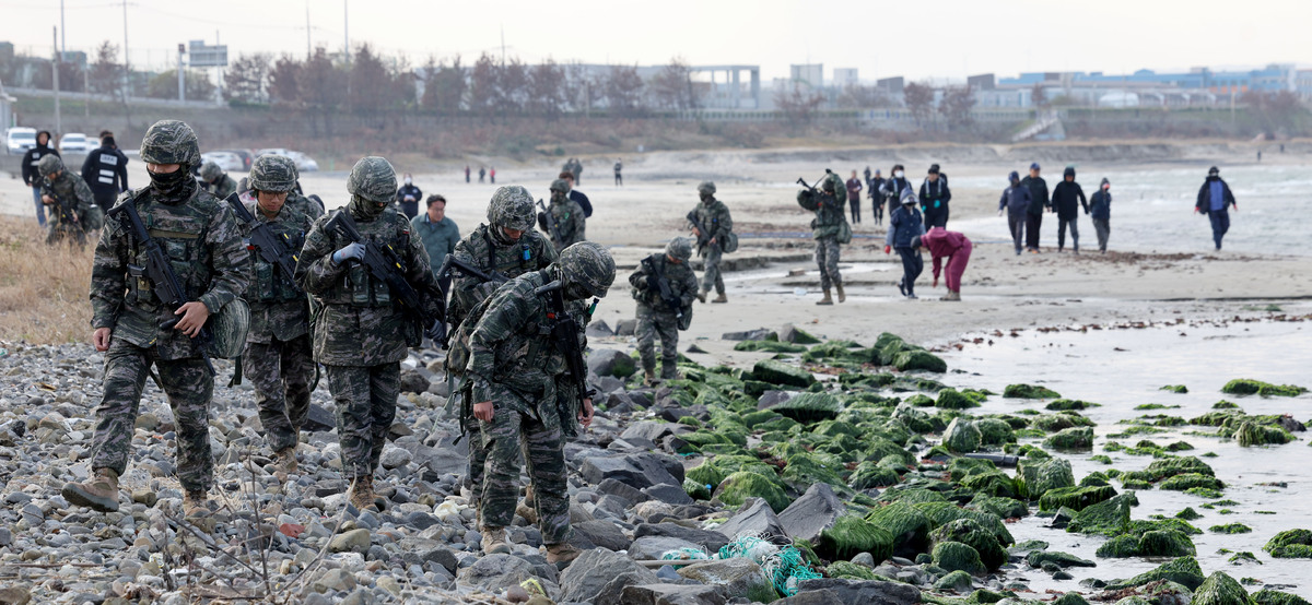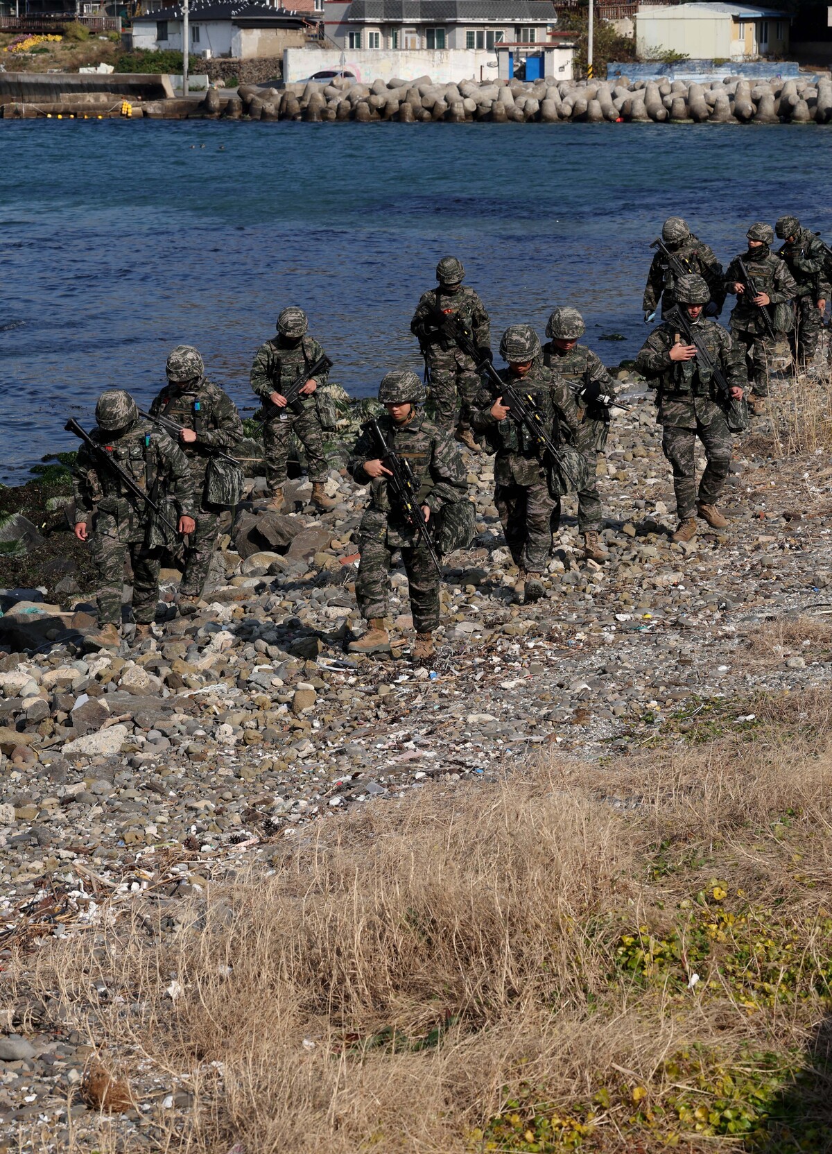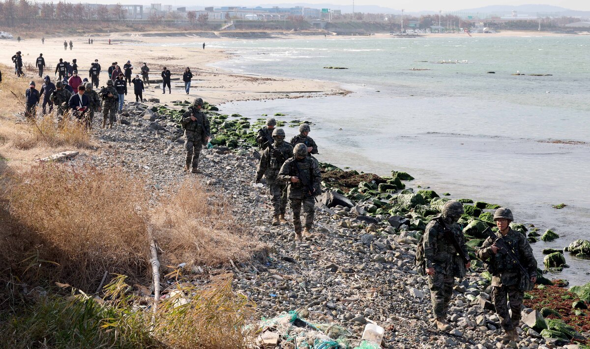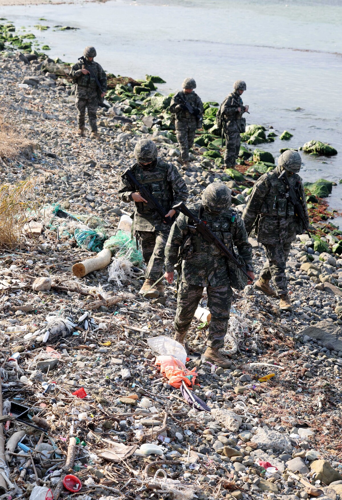 27일 오후 포항시 남구 동해면 해안에서 어민과 해양경찰, 해병대원들이 민·관·군 합동으로 파도에 쓸려온 마약류를 찾고 있다. 최근 포항 해변에서 차 봉지에 담긴 케타민이 잇따라 발견된 가운데 이날 합동 수색에서도 케타민 포장에 사용된 중국산 차 봉지를 발견해 해경에서 조사하고 있다. /이용선기자 photokid@kbmaeil.com