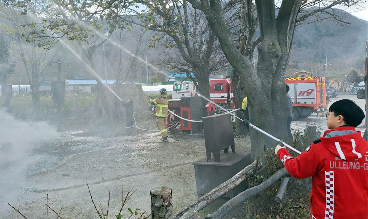포항남부소방서 울릉119안전센터(센터장 심형섭)는 울릉군, 북면의용소방대, 나리분지 주민들과 함께 울릉도 나리분지 국가민속문화유산 너와투막집(국가민속문화재 제256호)을 대상으로 목조문화재 및 산불진화 합동소방훈련을 했다.