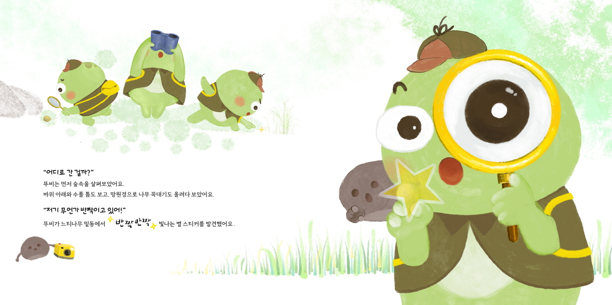 동화는 전국 최대 두꺼비 산란지인 망월지, 오형제나무가 있는 욱수골 등 수성구의 대표 생태 공간을 배경으로 뚜비와 도리가 사라진 아기 두꺼비를 찾아 나서는 모험을 그린다. 실제 수성구에서 관찰되는 오색딱따구리, 수달 등 다양한 생태종이 등장해 어린이들이 자연스럽게 지역 자연환경을 이해할 수 있도록 구성됐다.