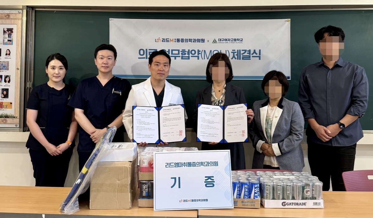 리드엠통증의학과는 최근 대구여자고등학교를 비롯해 병원 인근의 주요 상가 및 식당들과 ‘지역 사회 건강 증진을 위한 업무 협약(MOU)’을 체결했다고 1일 밝혔다.
