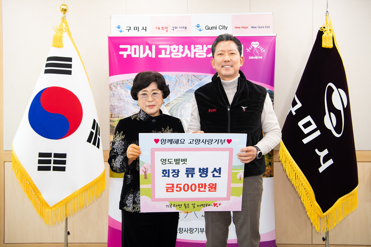 ㈜영도벨벳 류병선 회장이 2일 구미시에 고향사랑기부금 500만 원을 구미시에 기탁했다.
