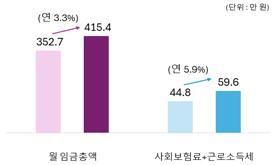 4일 한국경제인협회(이하 한경협) 분석에 따르면 지난 5년 동안 근로자의 월 임금은 연평균 3.3% 상승했지만, 근로소득세는 연평균 9.3%, 사회보험료는 4.3% 올랐다. 이 영향으로 원천징수 부담이 커지면서 실질 수령액 증가폭은 연 2.9% 수준에 그쳤다. 세금과 보험료의 부담 비중은 2020년 월 평균 12.7%에서 2025년 14.3%로 확대됐다.