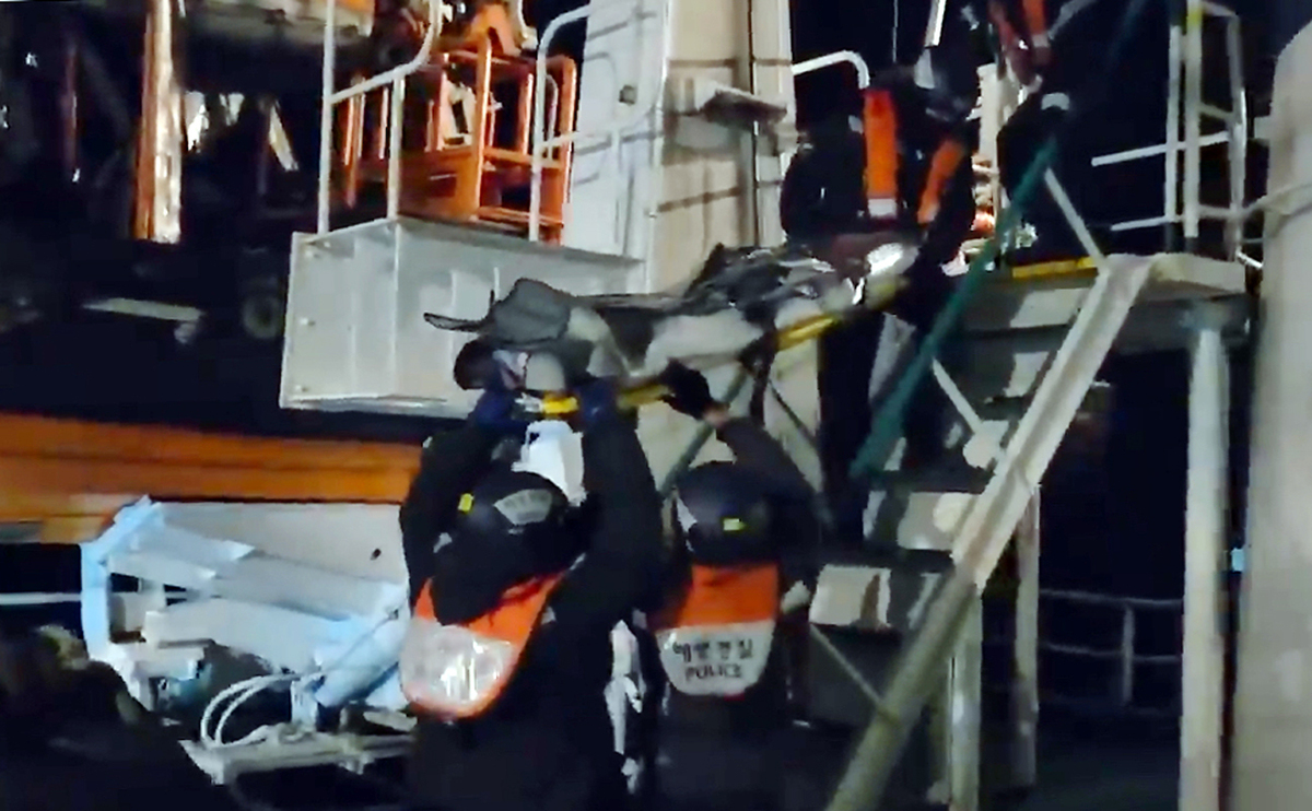 풍랑주의보로 여객선·헬기 모두 불가…새벽 4시 12분 동해항 입항 후 병원 후송