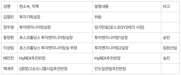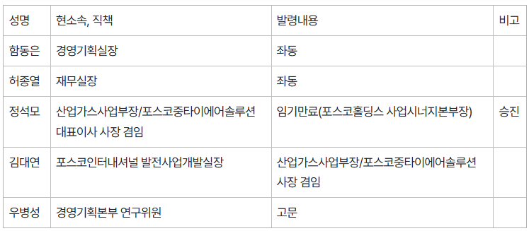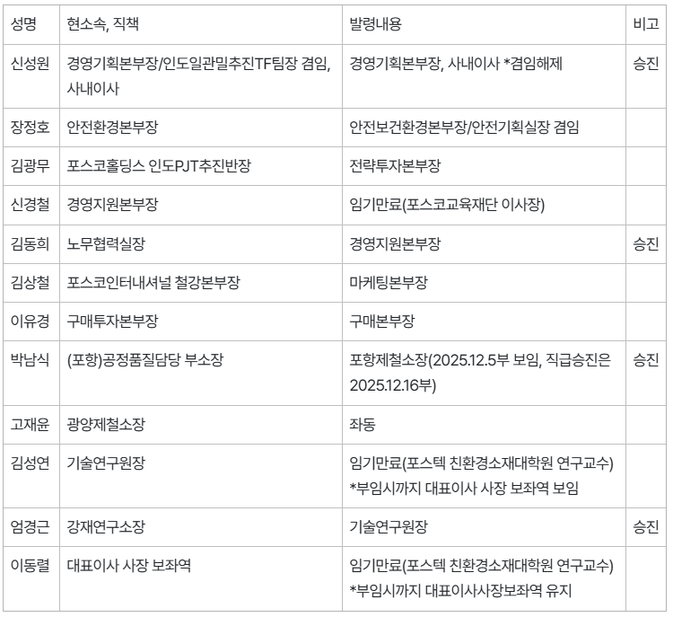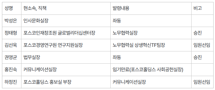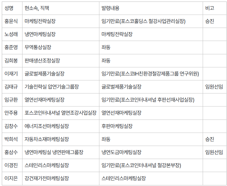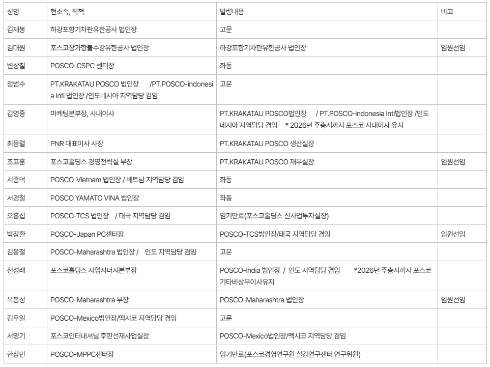 2026년 포스코 정기 임원인사 발령 사항