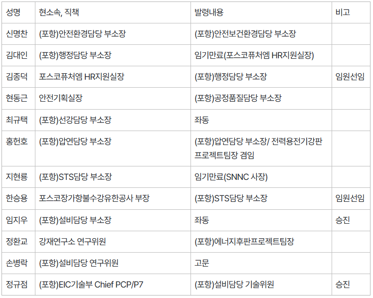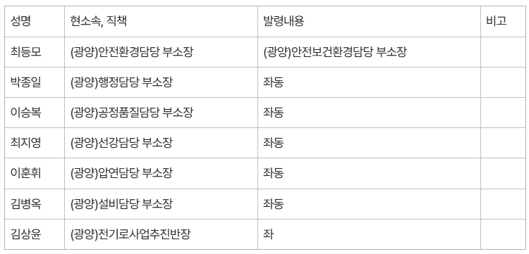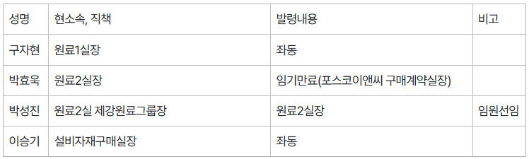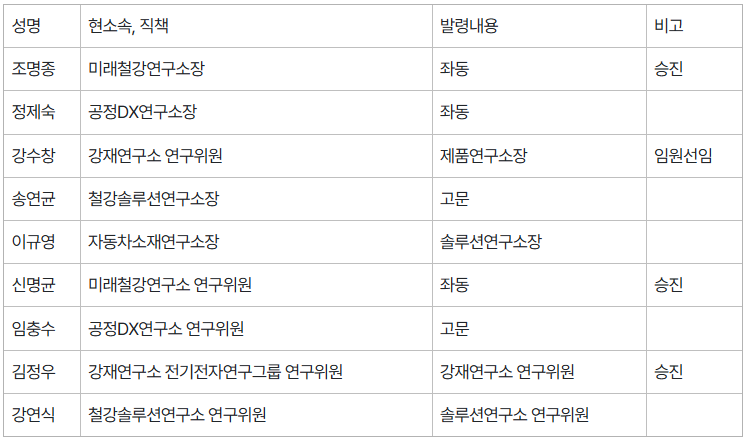 △본부장/제철소장/연구원장 인사