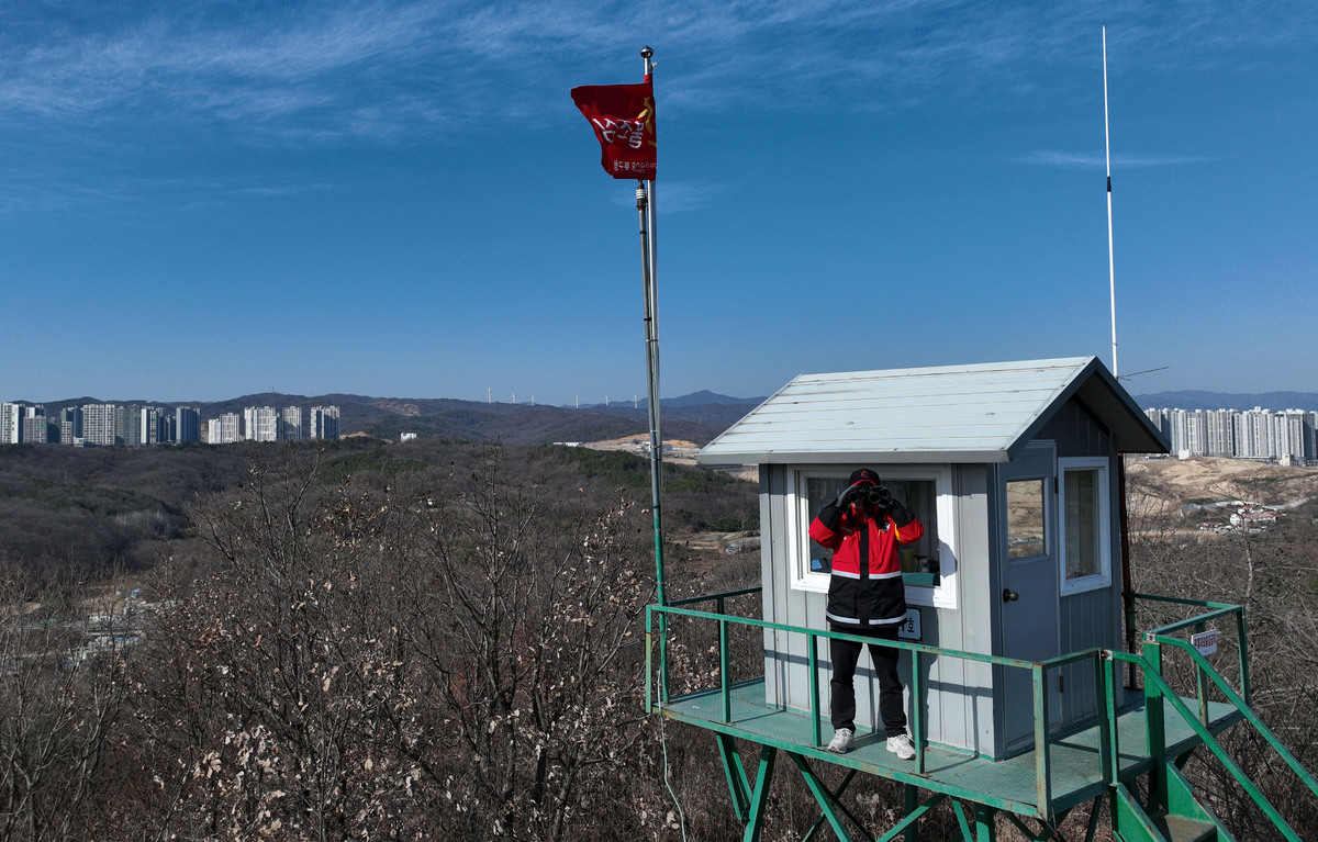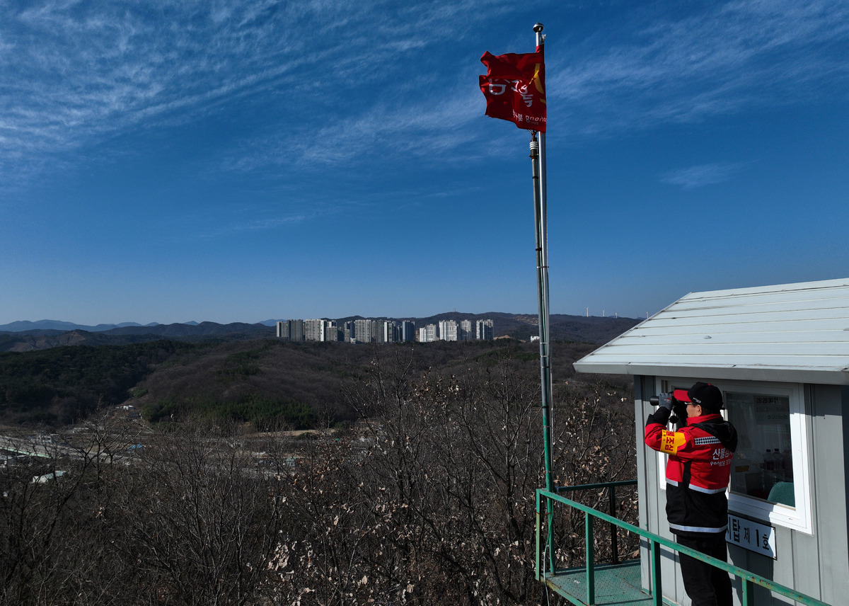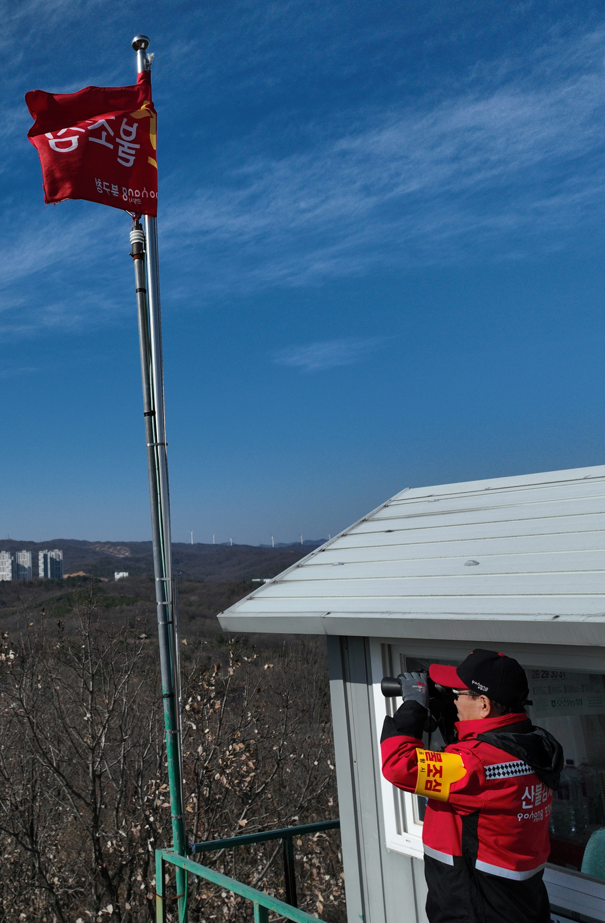 포항 지역에 건조경보를 비롯해 경북 동해안 지역에 건조특보가 내려진 8일 북구 용흥동 포항시 1호 산불감시탑에서 산불감시원이 경계근무를 강화하고 있다. /이용선기자 photokid@kbmaeil.com