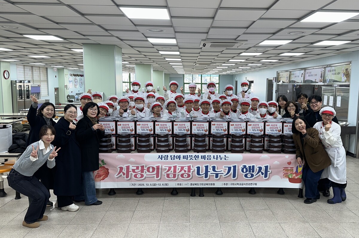 경북도구미교육지원청은 지난 5일과 6일 이틀간 천생초등학교 식생활관에서 구미시 학교급식 조리연구회원 81명이 참석한 가운데 ‘사랑의 김장나누기 행사’를 실시하였다.