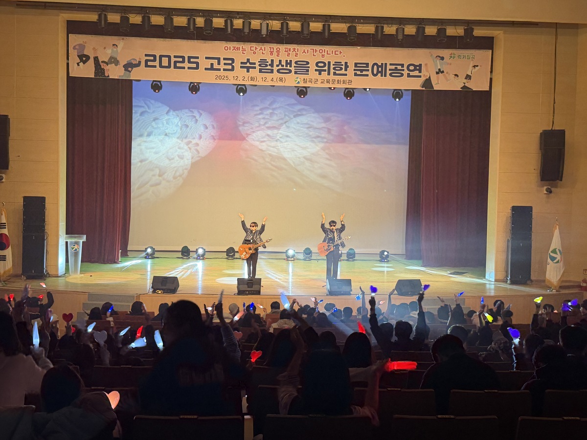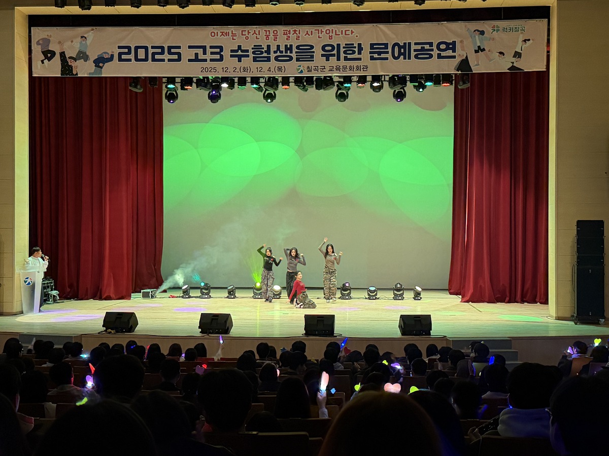 칠곡군 교육문화회관(관장 장경선)은 최근, 대학수학능력시험을 마친 고3 수험생들을 격려하고 휴식을 선사하기 위해 ‘고3 수험생 문예공연’을 지난 2일과 4일, 총 2회에 걸쳐 개최했다.