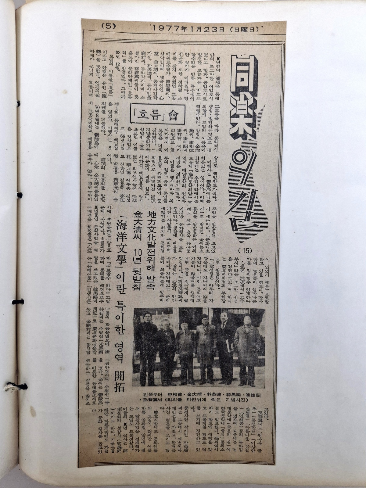 - 「同樂의 길-흐름會」, 제호(題號) 미상, 1977년 1월 23일.