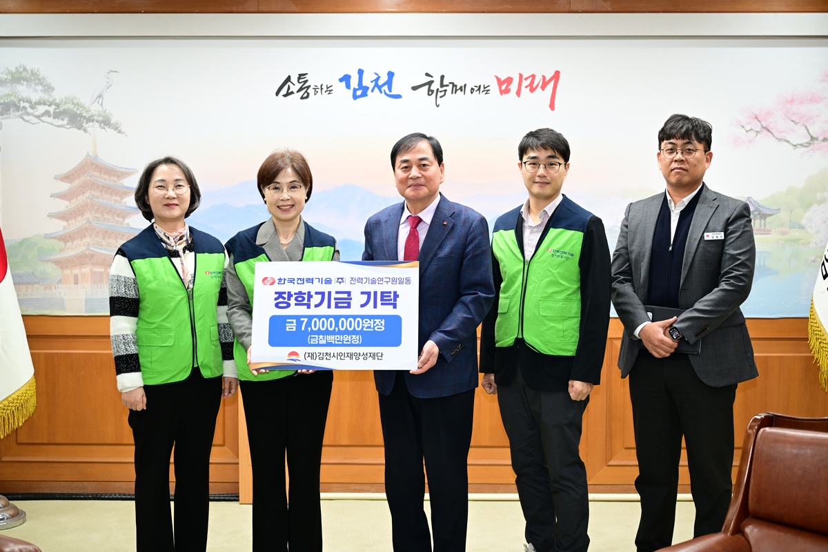 김천시인재양성재단은 지난 11일 김천의 교육 발전과 미래인재 양성을 위해 한국전력기술(주) 전력기술연구원(원장 설영실)이 700만 원의 장학 기금을 기탁했다고 밝혔다.
