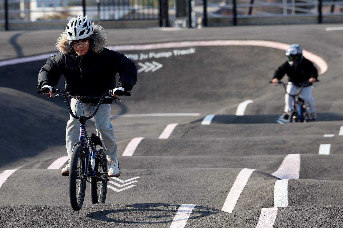 경주 지역 낮 최고 기온이 6.4℃에 머문 14일 오후 경주시 천북면 자전거공원 펌프트랙에서 학생들이 찬바람을 가르며 주행을 즐기고 있다. /이용선기자 photokid@kbmaeil.com