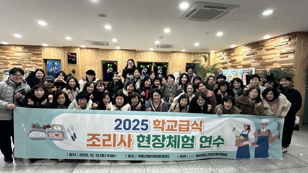 경상북도구미교육지원청 13일 영주 국립산림치유원에서 학교급식 조리사 55명을 대상으로 현장 체험 연수를 실시했다.