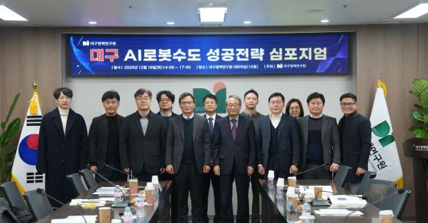 대구정책연구원은 16일 연구원 대회의실에서 ‘대구 AI 로봇 수도 성공 전략’을 주제로 심포지엄을 열고, AI 로봇 3+1 인프라 구축을 포함한 10대 핵심 전략사업을 제시했다.