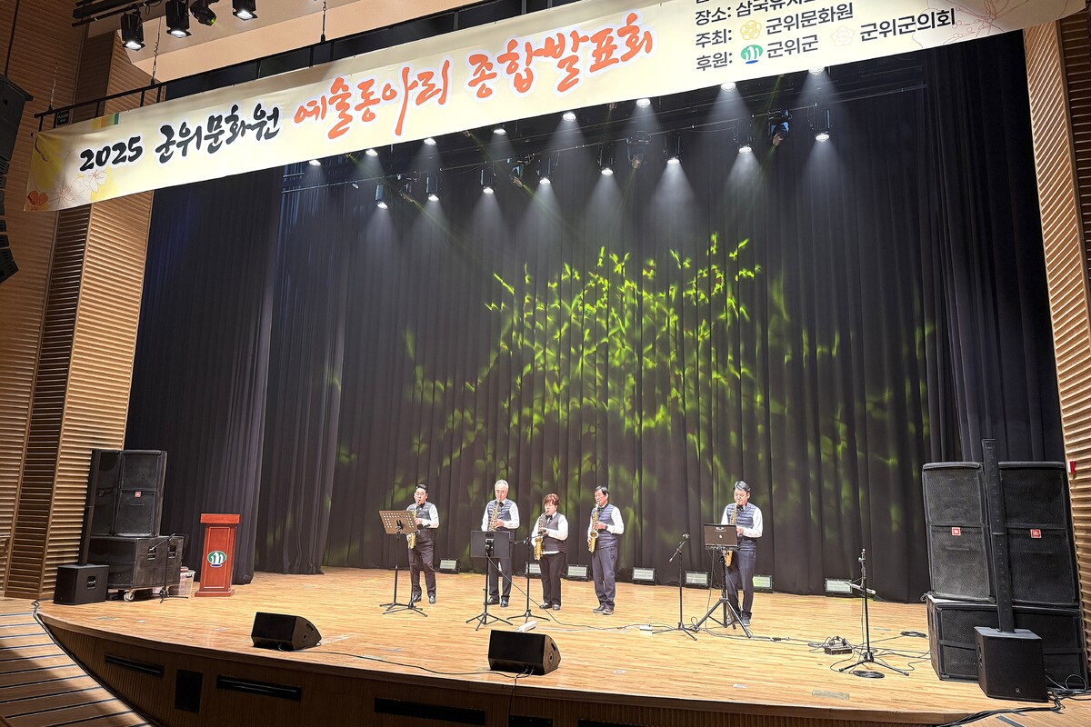예술의 흐름은 무대 공연으로 이어졌다. 지난 16일 삼국유사교육문화회관에서 열린 군위문화원 예술동아리 종합발표회에는 13개 동아리, 120여 명이 참여해 난타와 시조창, 통기타, 색소폰 연주 등 다채로운 무대를 선보였다.