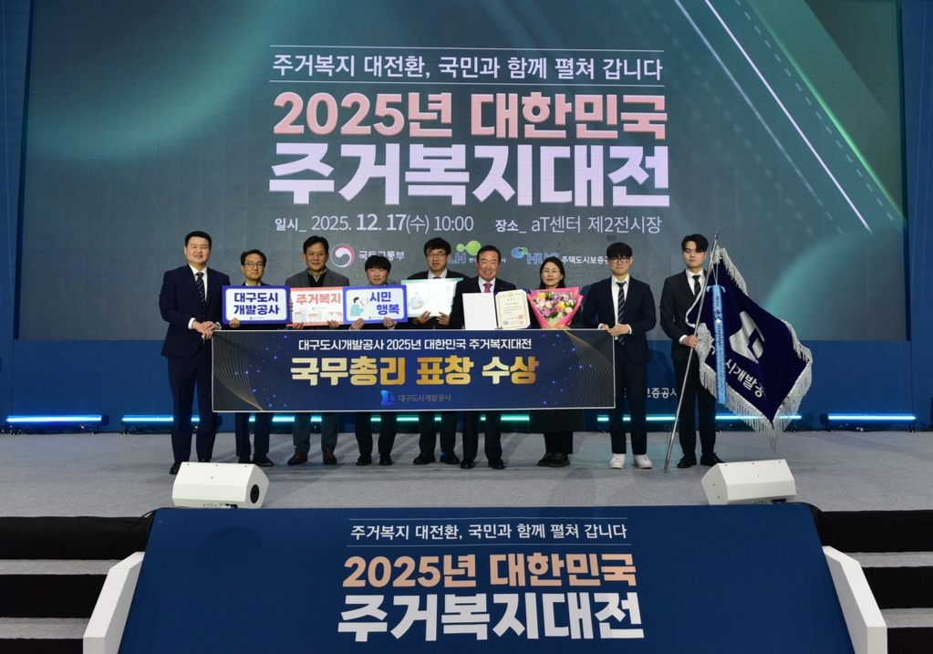 대구도시개발공사가 지난 17일 서울 양재 AT센터에서 열린 ‘2025 대한민국 주거복지대전’에서 국무총리표창을 수상했다. 청년·고령자·취약계층 등 전 생애 계층을 아우르는 주거복지 정책 성과가 인정받은 결과다.