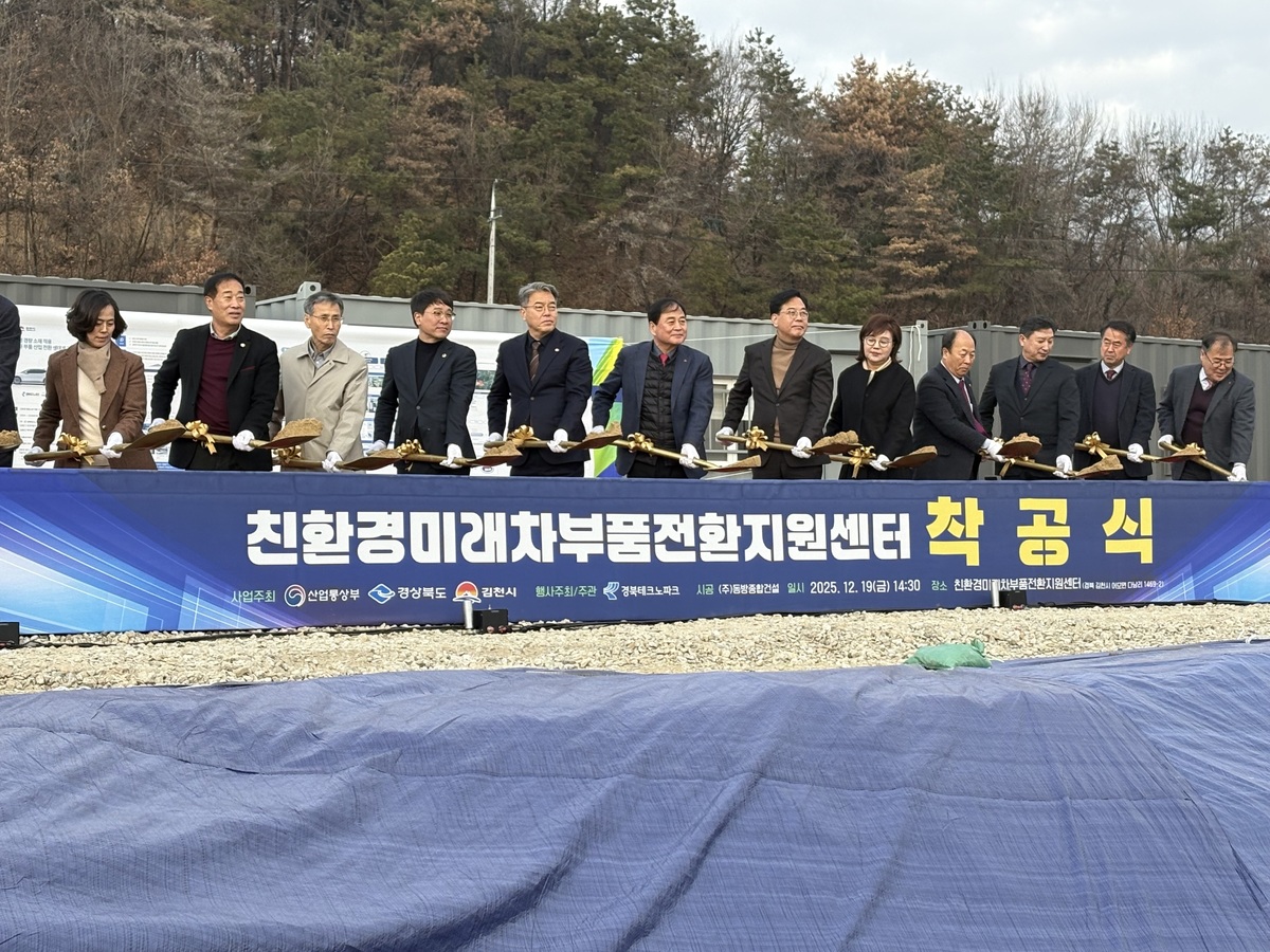 경북도가 19일 김천1일반산업단지에서 도내 기업의 친환경 경량 소재 적용 부품 생태계 기반 조성을 위한 ‘친환경 미래차 부품 전환 지원센터’ 착공식을 개최했다.