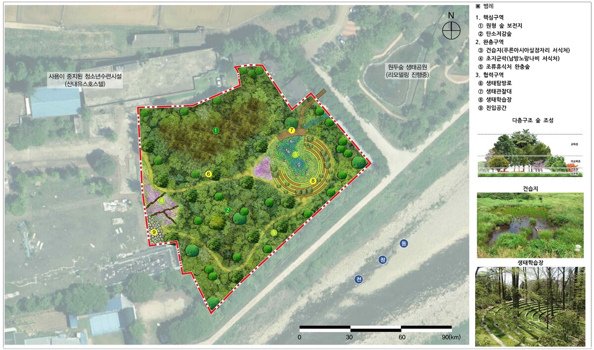 특히 사업 대상지는 기존 원두 숲 생태공원과 인접해 있으며, 향후 완공될 환경교육센터와도 연계된다.