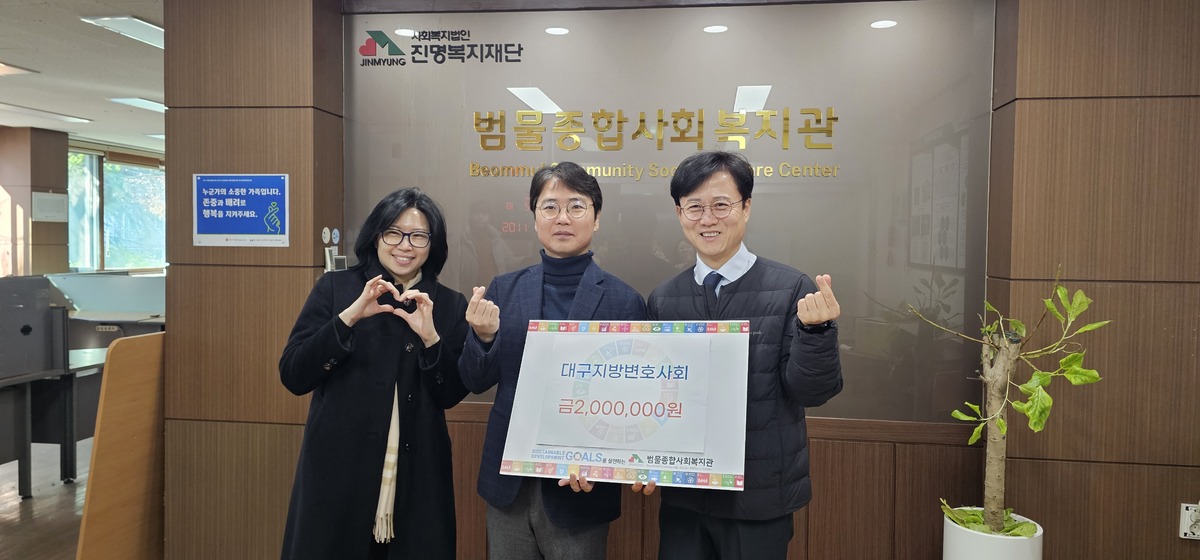 대구지방변호사회(회장 이병희) 저스티스봉사단(단장 김영민)은 최근 지적장애인의 사회복귀와 삶을 지원하는 ‘나눔공동체’ 후원을 위해 200만 원 등 총 600만 원의 사랑나눔후원금을 기탁했다.