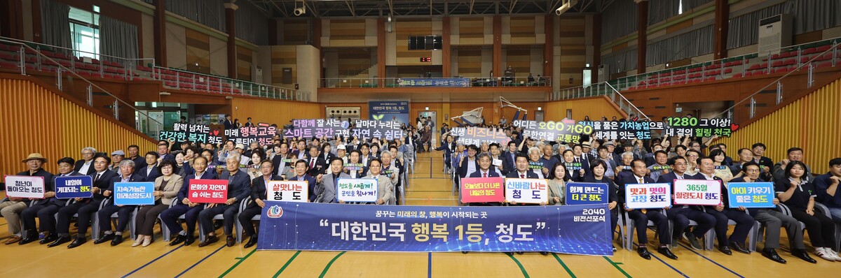청도군은 지난 6월 26일, 경북개발원이 수립한 ‘비전 2040 청도군 중장기 발전계획’으로 2040년을 향한 미래 비전인 ‘대한민국 행복 1등 청도’를 공식적으로 선포했다.