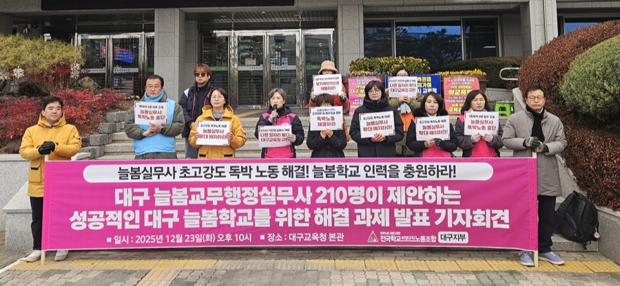 노조 관계자는는 “현장의 절규를 외면한 채 늘봄학교를 운영한다면 결국 무너지는 것은 아이들의 안전”이라며 “대구시교육청이 실질적인 대책을 내놓아야 한다”고 요구했다.